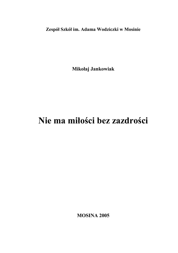 Nie ma miłości bez zazdrości - Zespół Szkół im. Adama Wodziczki w