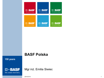 BASF Polska 150 years Mgr inż. Emilia Siwiec 2014-03-18 1 150 years BASF segments Chemicals Functional Functional Materials & Materials & Solutions Agricultural Solutions Oil & Gas Dispersions & Pigments Care Chemicals Catalysts Crop Protection Oil & Gas Nutrition & Health Coatings Paper Chemicals Performance Materials Performance Products Solutions Petrochemicals Monomers Intermediates Construction Chemicals Performance Chemicals 2014-03-18 2 150 years Verbund site worldwide 2014-03-18 3 150 years Profile of an ideal candidate Creative Open Responsible Entrepreneurial From different fields of studies Who take ownership Curies and open to new ideas Team players and good communicators With good languages skills Young Talents! 2014-03-18 4 150 years Profile of an ideal candidate Functions: HR, Finance, Purchasing, Controlling, IT Production: Catalyst, coatings, concrete addititives Business: Care chemicals, Crop Protection, Industiral chemicals, Plastics, Polyurethanes Field of studies: Chemical, Life Science, Economics, Marketing, Technical 2014-03-18 5 Check this out! https://www.basf.com/pl/pl/company/career/mycareer.html 2014-03-18 150 years 6 150 years Check this out! http://www.basf.pl 2014-03-18 7 150 years Winyloetery alternatywą dla styrenu w przemyśle samochodowym Kierujący pracą: Opiekun naukowy: dr inż. Aleksandra Ćwil-Kaczmarek (BASF) Ramy czasowe: lipiec 2016-czerwiec 2017 Staż: lipiec-wrzesień – analiza rynku, badania literaturowe (BASF) Praca w laboratorium: październik- czerwiec (PW) Cel: Zbadanie możliwości zastąpienia styrenu winyloeterami w szpachlówkach samochodowych 2014-03-18 8 150 years Tematy prac w dziale Care Chemicals 1. Skoncentrowane emulsje W/O – właściwości fizykochemiczne. Cel pracy: optymalizacja składu skoncentrowanych emulsji W/O pod względem właściwości fizykochemicznych i aplikacyjnych. 2. Kosmetyczne zastosowanie mikroemulsji. Cel pracy: Opracowanie ramowych receptur mikroemulsji, scharakteryzowanie właściwości fizykochemicznych i aplikacyjnych. 3. Transparentne emulsje – sposoby otrzymywania i właściwości. Cel pracy: Dobranie parametrów decydujących o transparentności emulsji, przygotowanie ramowych receptur, ich charakterystyki fizykochemicznej oraz właściwości aplikacyjnych. Opiekun naukowy: dr inż. Michał Stepulak (BASF Polska) Praca w laboratorium: BASF Polska Warszawa (częściowo) Ramy czasowe: lipiec 2016-czerwiec 2017 (proponowane do ustalenia) 2014-03-18 9 150 years Osoby kontaktowe BASF: dr inż. Aleksandra Ćwil-Kaczmarek: [email protected] – dr inż. Michał Stepulak: [email protected] Politechnika Warszawska: dr hab. inż. Wioletta Raróg-Pilecka 2014-03-18 10
