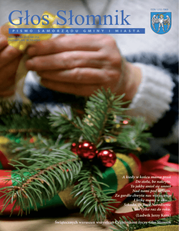 A kiedy w końcu mama prosi Do stołu, bo nakryte, To jakby anioł się unosił Nad nami pod sufitem. Za gardło chwyta nas wzruszenie I łezkę mamy w oku… Szkoda, że Boże Narodzenie Jest tylko raz do roku. (Ludwik Jerzy Kern) Świątecznych wzruszeń wszystkim Czytelnikom życzy Głos Słomnik SKlEP KOMPUTEROWY Słomniki ul. Kościuszki 18 tel.12-385-71-71 kom 531-330-225 godz otwarcia pn-pt 8-17 Sobota 8-13 . Sprzedaz komputerów, laptopów . dopasowanych do kazdego klienta : -biuro -gry -multimedia Tusze TONERY AKCESORIA Instalacja oprogramowania: systemy, programy biurowe programy antywirusowe programy do faktur SERWIS KOMPUTERÓW LAPTOPÓW - SŁOMNIKI UL. KOŚCIUSZKI 18 WEJDŹ NA STRONĘ www.ubezpieczenia-slomniki.pl NR TELEFONU I INNE !!!!!! ꜜ System ratalny . Dzialamy od 2002r . UBEZPIECZENIA Skup-sprzedaz-zamiana nowych i uzywanych tefonów komórkowych Oferujemy: -ładowarki, baterie, etui słuchawki, folie ochronne karty startowe, szkło hartowane . I NOWOŚĆ!! NOWE UZYWANE GRY NA KONSOLE OD 10 ZL . . SKUP - SPRZEDAZ Z UJES KUP DAJESZ E SPRZ NIASZ IE ZAM AKCESORIA SERWIS TELEFONÓW Wymiana digitizerów, lcd, głośników mikrofonów, taśm, złączy gniazd ładowania oprogramowanie simlok przycinanie kart i inne KONSOLE Aktualności 3 Zawsze, ilekroć uśmiechasz się do swojego brata i wyciągasz do niego ręce, jest Boże Narodzenie. (Matka Teresa z Kalkuty) Wszystkim Mieszkańcom Naszego Miasta i Gminy składamy serdeczne życzenia wszelkiej pomyślności, zdrowia oraz satysfakcji w życiu osobistym i zawodowym. Paweł Knafel Burmistrz Gminy Słomniki Grzegorz Płażek Przewodniczący Rady Miejskiej w Słomnikach Tu znajdziesz Głos Słomnik: Słomniki: • Spaar, Rynek • sklep spożywczy, ul. Proszowska • sklep Talencik, ul. Wolności • Lewiatan, ul. Poniatowskiego • Miejsko–Gminne Centrum Kultury, ul. Wolności • sklep Talencik 2, os. Świerczewskiego • kiosk ul. Świerczewskiego, właściciel: Mieczysław Koenig • kiosk ul. Świerczewskiego, właściciel: Zenona Puta • kiosk na Rynku, właściciel: Tadeusz Skrzydlewski • Delikatesy Centrum, ul. Kościuszki • Miejska Biblioteka Publiczna, ul. Kościuszki • Delikatesy Euro, ul. Kościuszki • Urząd Miejski w Słomnikach, ul. Kościuszki • Hala Sportowa, ul. Świerczewskiego Prandocin: • firma Koen, Prandocin 53 Polanowice: • sklep spożywczo–przemysłowy, Polanowice 26 Niedźwiedź: • sklep GS Waganowice: • sklep spożywczy, Waganowice 21 Wężerów: • sklep w remizie OSP Znaleziono pewną kwotę pieniędzy w okolicach ZGKiM. Właściciel może je odebrać w Centrum Kultury w Słomnikach. Głos Słomnik informuje: • Materiały do druku należy nadsyłać do 25. dnia miesiąca poprzedzającego wydanie Skromny emeryt zgubił okulary podczas głosowania w Centrum Kultury. Uczciwego znalazcę prosimy, aby odniósł je do MGCK. • Materiały nadesłane w ostatniej chwili mogą się nie zmieścić w danym numerze • Zamieszczamy tylko materiały zgodne z linią pisma samorządowego • Redakcja zastrzega sobie prawo do skrótów w nadesłanych materiałach Pismo Samorządu Gminy i Miasta Ukazuje się 10 razy w roku Redakcja: Joanna Antosz J.A.– red. naczelna; Alicja Biczysko (a.b.), Zuzanna Michalska Z.M., Wojciech Janczarski W.J., Adrian Sadowski A.S. Oprac. graf. i skład: Zuzanna Michalska Korekta: Alicja Biczysko Adres Redakcji: Miejsko–Gminne Centrum Kultury w Słomnikach, ul. Wolności 4 tel. (12) 388 11 49, e–mail: [email protected] Druk: Imagine Design Group, Kraków Zdjęcie na okładce: Miejsko–Gminne Centrum Kultury w Słomnikach Numer zamknięty 29 listopada 2015 r. Głos Słomnik grudzień 2015 • Reklamy przyjmujemy tylko jako gotowe projekty • Treść ogłoszeń formułuje ogłoszeniodawca • Za treść ogłoszeń i reklam Redakcja nie ponosi odpowiedzialności • Materiały do gazety należy wysyłać na adres: [email protected] • Wszelkie informacje dostępne są na stronie www.mgckslomniki.pl lub pod nr. telefonu: 12 388 11 49 4 Aktualności XI sesja Rady Miejskiej w Słomnikach 26 listopada w sali obrad Urzędu Miejskiego odbyła się XI zwyczajna sesja Rady Miejskiej w Słomnikach. Obrady zainaugurował Przewodniczący Grzegorz Płażek, po czym głos zabrał Burmistrz Paweł Knafel, zdając relację ze swojej działalności pomiędzy sesjami. Burmistrz Knafel w ostatnich dwóch mie- 90% ze środków zewnętrznych. Zatrudniosiącach uczestniczył w wielu spotkaniach ny w drodze konkursu, najprawdopodobniej m.in. w walnym zebraniu sprawozdawczo od stycznia, pracownik przez najbliższe 6 lat – wyborczym Stowarzyszenia Gmin i Powia- zajmować będzie się wdrażaniem nowego tów Małopolski, w zebraniu walnym LGD programu ochrony powietrza w naszej gmiJurajska Kraina dotyczącym przygotowania nie poprzez m.in. pomoc w pozyskiwaniu Lokalnej Strategii Rozwoju, w spotkaniu funduszy unijnych na montaż odnawialnych w GDDKiA w sprawie bezpieczeństwa źródeł energii czy organizowanie kampanii na przejściach dla pieszych i konferen- edukacyjno – informacyjnych. cji regionalnej, w czasie której omawiano Kolejne wiadomości przekazane przez Program Rozwoju Obszarów Wiejskich Burmistrza dotyczyły odebranych dróg na lata 2014-2020. Nawiązując do Progra- gminnych i powiatowych oraz ogłoszonych mu ograniczenia niskiej emisji dla gminy i rozstrzygniętych przetargów. Wybierając Słomniki [więcej na temat programu na dal- z tych najistotniejszych: przesunięto terszych stronach gazety – przyp. red.], który min składania ofert w przetargu na budowę tego dnia miał zostać przegłosowany przez Specjalistycznego Centrum Usług Medyczradnych, poinformował zebranych o udzia- nych. Wszystko za sprawą dużej ilości firm, le w konferencji „Małopolska w zdrowej jakie złożyły dotychczas dokumenty oraz atmosferze”, poruszającej m.in. problem dodatkowe zapytania przetargowe. Wyefektów zdrowotnych wynikających z za- znaczony nowy termin z