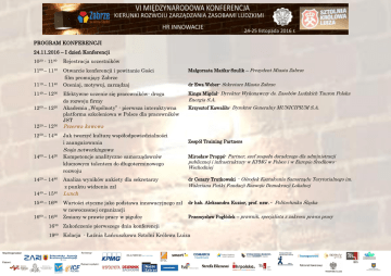 PROGRAM KONFERENCJI 24.11.2016 – I dzień Konferencji 1030 - 1100 Rejestracja uczestników 1100 – 1110 Otwarcie konferencji i powitanie Gości film promujący Zabrze Oceniaj, motywuj, zarządzaj Małgorzata Mańka-Szulik – Prezydent Miasta Zabrze Efektywne uczenie się pracowników- droga do rozwoju firmy Akademia „Wspólnoty” - pierwsza interaktywna platforma szkoleniowa w Polsce dla pracowników JST Kinga Migdał- Dyrektor Wykonawczy ds. Zasobów Ludzkich Tauron Polska 1110 – 1140 1140 – 1200 1200 – 1220 1220 – 1250 1250 – 1400 dr Ewa Weber- Sekretarz Miasta Zabrze Energia S.A. Krzysztof Kawaliło- Dyrektor Generalny MUNICIPIUM S.A. Przerwa kawowa Jak tworzyć kulturę współodpowiedzialności i zaangażowania Zespół Training Partners Sesja networkingowa 1400 – 1420 1420 – 1440 1440 – 1540 1540 – 1600 1600 – 1630 Kompetencje analityczne samorządowców kluczowym talentem do długoterminowego rozwoju Mirosław Proppé- Partner, szef zespołu doradczego dla administracji Analiza wyników ankiety dla sekretarzy z punktu widzenia zzl dr Cezary Trutkowski - Ośrodek Kształcenia Samorządu Terytorialnego im. publicznej i infrastruktury w KPMG w Polsce i w Europie ŚrodkowoWschodniej Waleriana Pańki Fundacji Rozwoju Demokracji Lokalnej Lunch Wartości etyczne jako podstawa innowacyjnego zzl w nowoczesnej organizacji Zmiany w prawie pracy w pigułce dr hab. Aleksandra Kuzior, prof. nzw. - Politechnika Śląska Przemysław Pogłódek – prawnik, specjalista z zakresu prawa pracy 1630 Zakończenie pierwszego dnia konferencji 1900 Kolacja - Łaźnia Łańcuszkowa Sztolni Królowa Luiza 25.11.2016 – II dzień Konferencji HR w administracji Trendy HR IT w HR Moderator: Agnieszka Olbrycht-Banach Moderator: Anna Młyńska Moderator: Katarzyna Klimek Zrozumieć kulturę organizacyjną Smart-Urzędnik Natalia Brzoza Romuald Gacka 1000 – 1100 Wartościowanie stanowisk Grzegorz Frugalski Sekretarz Miasta Sosnowiec Joanna Jaciuk Naczelnik Wydziału Spraw Pracowniczych Psycholog, trener, konsultant Competens Pracownia Szkoleń i Rozwoju 1100 – 1120 Przerwa kawowa Przerwa kawowa 1120 – 1220 Jak analizować zasoby kadrowe w celu stworzenia CUW Jak wykorzystać reakcje stresowe do budowania osobistej efektywności w pracy Mariusz Szczubiał Zastępca Skarbnika Miasta Toruń koordynator Obserwatorium Procesów Miejskich i Metropolitalnych przy UŚ Marcin Korzeb Dyrektor ds. Badań i Rozwoju Smart In Sp. z o.o. Przerwa kawowa Narzędzia informatyczne optymalizujące obszar HR w jednostkach oraz obsługujących je CUW Marzena Jankowska Trener, coach, wykładowca WSB Wojciech Białkowski Wojciech Mularski Menadżer ds. Klientów Kluczowych BPSC S.A. Prezes Zarządu Centrum Doradztwa i Analiz Projektowych Sp. z o.o. 1220 – 1240 Przerwa kawowa Przerwa kawowa Przerwa kawowa 1240 – 1340 Model kompetencyjny Urzędu Miasta Łodzi Rozwijanie systemu zzl na bazie kompetencji, w organizacji dostarczającej usługi ochrony zdrowia- droga przez zmiany Zarządzanie Kapitałem Ludzkim 3.0: wyzwania, szanse i możliwości Ettore Turra Grzegorz Filipowicz Barbara Mrozowska- Nieradko Sekretarz Miasta Łódź Beata Łuszczyńska Dyrektor Biura ds. Zarządzania Kadrami 1340 Zakończenie konferencji i lunch Członek Zarządu jednej z największych włoskich organizacji dostarczających usługi w ochronie zdrowia Rovereto , region Trentino ekspert ZZL, Business Partner w Asseco Data Systems S.A.