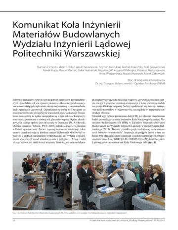 Komunikat Koła Inżynierii Materiałów Budowlanych