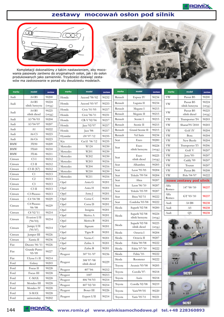 produkowanych jako zamienniki. Trzydzieści dziewięć zestawów ma zastosowanie w ponad stu dwudziestu modelach.
