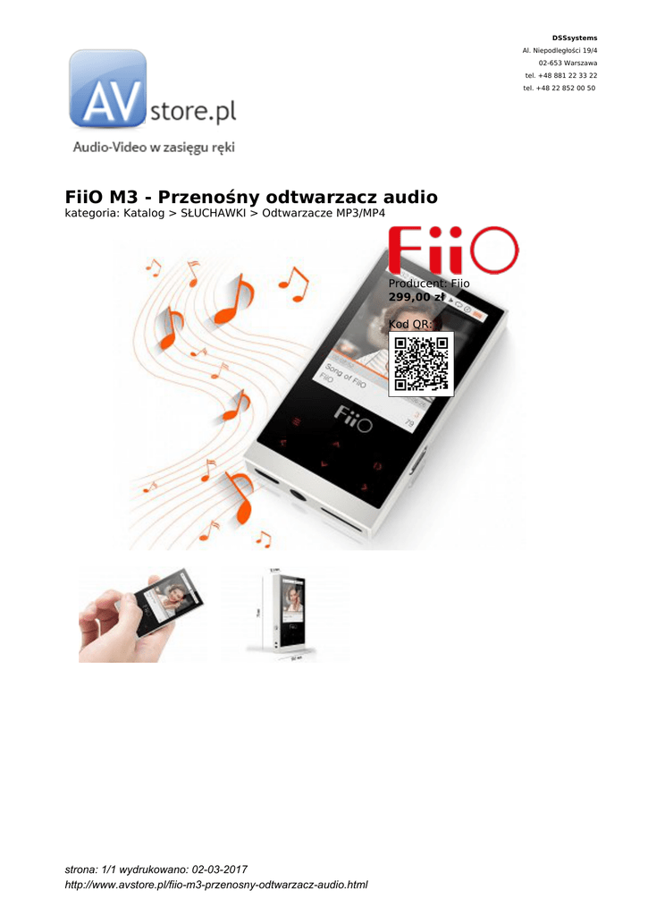 DSSsystems Al. Niepodległości 19/4 02-653 Warszawa tel. +48 881 22 33 22 tel. +48 22 852 00 50 FiiO M3 - Przenośny odtwarzacz audio kategoria: Katalog > SŁUCHAWKI > Odtwarzacze MP3/MP4 Producent: Fiio 299,00 zł Kod QR: strona: 1/1 wydrukowano: 02-03-2017 http://www.avstore.pl/fiio-m3-przenosny-odtwarzacz-audio.html