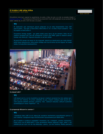 O trybie LAN słów kilka Data publikacji : 15.07.2009 Ocena: 4.4/5 (23) Zmusiliście mnie bym napisał to wyjaśnienie, bo wielu z Was nie wie o co tak na prawdę chodzi z " brakiem trybu LAN". Pod petycja do Blizzarda by przywrócili tryb LAN podpisało się już przeszło 60 tyś osób i założę się, że 3/4 z nich nie wie o co prosi... W większości gier sieciowych gracze połączeni są ze sobą bezpośrednio (tzw. P2P peer-to-peer) - tak było w StarCrafcie, WarCrafcie II i III i w wielu innych tytułach). Tak też będzie w StarCrafcie II. Oczywiście istnieją wyjątki - gry gdzie każdy gracz łączy się do serwera, który ma za zadanie zarządzać grą. Jest tak przeważnie w grach typu MMO, gdzie to właśnie serwer buduje cały świat gry i reguluje wszystko co się tam dzieje. W grach RTS serwer nie wnosi nic do rozgrywki. Jedynie po zakończeniu gry może zbierać jakieś dane statystyczne, które potem dodają nam się do konta (np kto wygrał, ile trwała walka, ile budynków zbudowaliśmy). Co dawał LAN ? LAN dawał nam to, że nie musieliśmy się łączyć z żadnym serwerem by móc założyć grę i grać po sieci lokalnej. Po prostu zakładało się grę, znajomi siedzący obok łączyli się z nami poprzez kabelek sieciowy i graliśmy. Tyle... Żadnych statystyk, żadnych systemów sprawdzających naszą "legalność" - nic. Co proponuje Blizzard w zamian ? "Likwidacja trybu LAN" to nic więcej jak usunięcie mechanizmu wyszukiwania graczy w sieci lokalnej i zastąpienie tego mechanizmami wyszukiwawczymi Battle.Netu. Jak to będzie w praktyce wyglądało? Umawiamy się z kolegami, znosimy komputery, każdy łączy się do Battle.Netu (i tutaj sprawdzana będzie legalność kopii), jeden z nas zakłada grę po czym inni do niej dołączają. I gramy... po sieci lokalnej. Między graczami pingi są znikome, brak lagów, wszystko pięknie. Koniec gry - każdy znowu łączy się do Battle.Netu i wysyła statystyki rozgrywki, które potem uaktualniają się u niego na koncie. Przechodzimy po zakończonej grze do interfejsu Battle.Net gdzie znowu możemy założyć sobie grę. O co tyle hałasu i petycji nie wiem. Wiem tylko tyle, że taki model skutecznie zatrzyma piractwo i zapewne Blizzard na to liczy. Zapewne na pirackich wersjach dostępne będzie tylko granie w trybie singleplayer, ale tak jest już teraz w WarCrafcie 3. Oczywiście podczas grania w trybie singleplayer nie będziemy musieli być połączeni do Battle.Netu (kolejny mit obalony). Mam nadzieję, że trochę rozjaśniłem sprawę. Jeżeli nadal macie wątpliwości to pytajcie w komentarzach. Tagi: LAN Uprasza się osoby kopiujące w całości newsy z naszej witryny na swoje strony lub fora o wstawianie widocznych klikalnych linków, bezpośrednio do pobranego tekstu. W przypadku braku widocznego linku, skopiowanie tekstu uważa się za kradzież własności intelektualnej. Dziękujemy: Administratorzy serwisu. Autor: Krzysztof Baranowski Data publikacji : 15.07.2009 Data modyfikacji : 15.07.2009 Liczba wyświetleń tekstu: 12799 Komentarz (189) dodaj komentarz Blue: Niestety nie mozna miec wszystkiego, takich ludzi w sytuacji ktora opisales stanowi ulamek tych wszystkich graczy ktorzy kupia SC2. Nie masz warunkow trudno, SC2 nie jest czyms czego potrzeba do zycia. To jest tak samo jak ze sprzetem, nie masz kart graficznej pod crysisa - nie pograsz sobie trudno, czy z tego powodu crytek ma wywalic polowe bajerow graficznych? Co do radiowki to nawet to wystarczy zeby sie zalogowac, powiem wiecej nawet polaczenie GPRS z komorki podlaczonej do kompa umozliwi logowanie do gry a nastepnie granie po LANie z innymi zgodnie z tym co jest napisane w tym newsie.~ MardukGD 2009/07/17 12:08 Xymek: Nie porownuj tych czasow z tym co bylo 10 lat temu, wtedy prawie nikt nie mial jeszcze internetu i zrobienie czegos takiego jak teraz mijaloby sie z celem.~MardukGD 2009/07/17 12:13 Nic nowego nie wyjasniliscie... Poprostu trybu LAN nie bedzie i do grania multi bedzie koniecznosc bycia podlaczonym do netu (chocby na moment w celu werysikacji orginalnosci gry). Akurat jak juz jestem podlaczony do netu to mi zbytnio nie zalezy czy gra idzie po lanie czy przez neta.~gemGreg 2009/07/17 13:05 dla Ciebie może nowości nie było, ale ludzie zadawali nam takie pytania, że się włosy na głowie jeżyły i musieliśmy to napisać :] ~ElemenT 2009/07/17 14:03 Wszystko super i pieknie ale tryb lan zabije nocki z komputerami w garazach gdzie nie ma netu, a znajac zycie szybko powstanie emulator battle netu gdzie bedzie sobie mozna zalozyc swoj lanowy battle net. Totalny bezsens tracenie czasu denerwowanie graczy i bezsensowne wydawanie pieniedzy. nie wyobrazam sobie tego...~Silax 2009/07/17 14:13 No to do LANu będziecie mieć nadal CS1 :) A jak nie pasuje wam ten SC2 to go zwyczajnie nie kupicie. I będzie spokój :)~MHT 2009/07/17 14:53 Pieprzenie :/ Blizzard musi zarobić na grze i się z tym zgadzam, ale po lekturze postów tutaj mam wrażenie, że CENA GRY MOGŁABY BYĆ NIŻSZA gdyby złodzieje zamiast grać na pirackich kopiach kupowali oryginały. A tak pozostaje mi niesmak z namiastki dyskusji z ludźmi, przez których musze płacić więcej za oryginał, bo oni chcą sobie pograć w lesie na ławeczce (taaa... bo uwierzę)!~DevilaN 2009/07/17 15:45 @ ~Xymek 2009/07/17 11:03 W 100% popieram Twoje zdanie - dokładnie tak samo myślę ! Pozdrawiam !~Tomf 2009/07/17 15:55 "O co tyle hałasu i petycji nie wiem." O nic. Walnie się potem limit 10 gier w tygodniu. Paczka 10 dodatkowych za 14$. Za konto premium 10$ miesięcznie. Biznes się kręci. Obejście BattleNetu oceniam na jakieś 2-3 dni po premierze. Tyle im da to 'zabezpieczenie', że uczciwi gracze nie będą mogli sobie pograć z kumplami na LANie.~Komentator 2009/07/17 20:58 Zgadzam się z Komentatorem. Niech nikt z was nie myśli, że nie powstaną pirackie serwery. Różnica będzie tylko taka, że pirat będzie miał LANa, a uczciwy nabywca nie. Jak wiadomo, n