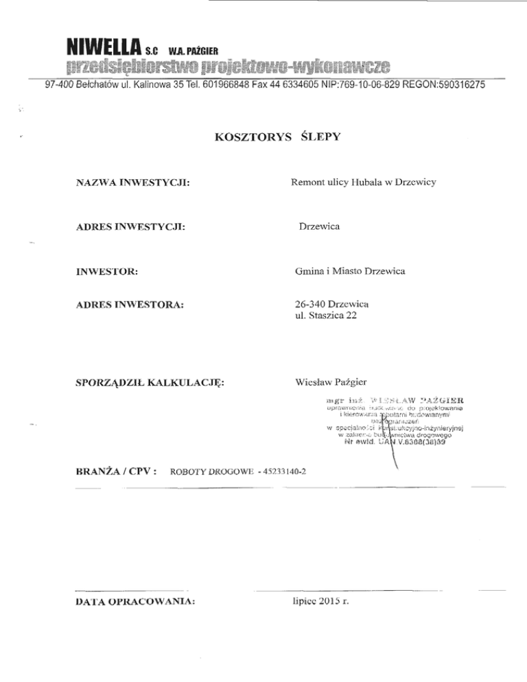 KOSZTORYS ŚLEPY