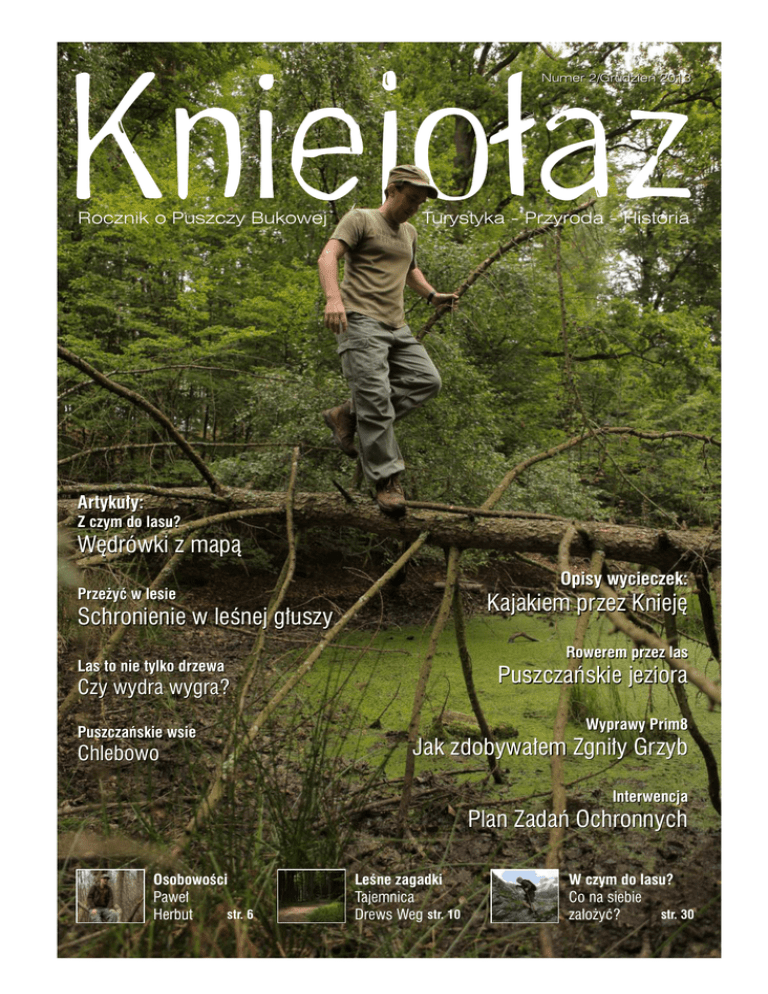 Numer 2/Grudzień 2013 Kniejołaz Rocznik o Puszczy Bukowej Turystyka - Przyroda - Historia Artykuły: Z czym do lasu? Wędrówki z mapą Opisy wycieczek: Przeżyć w lesie Kajakiem przez Knieję Schronienie w leśnej głuszy Rowerem przez las Las to nie tylko drzewa Puszczańskie jeziora Czy wydra wygra? Puszczańskie wsie Chlebowo Wyprawy Prim8 Jak zdobywałem Zgniły Grzyb Interwencja Plan Zadań Ochronnych Osobowości Paweł str. 6 Herbut Leśne zagadki Tajemnica Drews Weg str. 10 W czym do lasu? Co na siebie str. 30 założyć? LAS TO NIE TYLKO DRZEWA Wstęp Spis treści Minął rok od momentu, kiedy ukazał się pierwszy numer Kniejołaza. W lesie przeminęły 4 pory roku, cykl natury zatoczył koło i mamy nowy numer. Rok 2013 to przede wszystkim prace nad Planem Zadań Ochronnych dla obszaru Wzgórz Bukowych. Dokument nie został jeszcze ostatecznie zatwierdzony ale, można już przeczytać artykuł na temat prac i założeń planu. Nie mogło zabraknąć też wycieczek w teren piechotą, rowerem i kajakiem. O niektórych wypadach możecie przeczytać w odpowiednich działach. Dla miłośników tajemnic mamy artykuł o Drodze Chojnowskiej i jej historii. Powodem napisania tego materiału był słupek, który stoi na Przełęczy 3 Braci. Poszukując wyjaśnienia znaczenia napisu Drews Weg widniejącego na słupku, odnaleźliśmy całkiem interesującą historię rozwoju infrastruktury drogowej w Puszczy. Niepozorna wieś - Chlebowo, również posiada pasjonującą historię i zachęcam do przeczytania artykułu z cyklu „Puszczańskie wsie”. Osoby zainteresowane spędzaniem wolnego czasu na łonie przyrody mogą skorzystać z porad: jak zbudować schronienie w lesie, co na siebie założyć oraz jak obchodzić się z mapą. Przemierzając las warto mieć świadomość jakie zasady panują na terenie rezerwatu przyrody i o tym też przygotowaliśmy artykuł. Mam nadzieję, że po lekturze Kniejołaza zapragniecie wyruszyć w teren w poszukiwaniu przygód a informacje zawarte w roczniku pomogą Wam spędzić czas w Puszczy Bukowej bardziej świadomie. Życzę wszystkim ciekawej lektury i do zobaczenia na szlaku w Bukowej Kniei. 6 Osobowości Puszczy Paweł Herbut 10 Leśne zagadki Tajemnica Drews Weg 12 Wycieczki po Puszczy Kajakiem przez Knieję 14 Puszczańskie wsie Chlebowo 16 Przeżyć w lesie Schronienie w leśnej głuszy 22 Puszcza w obiektywie Droga Górska 24 Las to nie tylko drzewa Czy wydra wygra? 26 Z czym do lasu? Wędrówki z mapą 32 Leśne paragrafy Rezerwat przyrody Redaktor naczelny, grafika i skład: Krzysztof Matysiak [email protected] Ilustracje: Roman Kurzawa Marcin Przydatek Kronika Co wydarzyło się w 2013 roku? 30 W czym do lasu? Co na siebie założyć? Redakcja Redakcja: Robert Biegas Anna Bielecka Andrzej Ceranowski Paweł Herbut Dorota Markiewicz Mirosław Wacewicz Edward Zadorski 4 34 Rowerem przez las Puszczańskie jeziora Okładka: Uroczysko Zwierzyniec i przemierzający je kniejołaz. Fot. Krzysztof Matysiak www.bukowa.szczecin.pl 36 Interwencja Plan Zadań Ochronnych 38 Wyprawy Prim8 Jak zdobywałem Zgniły Grzyb 39 Legendy Karczma Petera Schmidta 3 Kronika STYCZEŃ 2013 13 stycznia Wycieczka KK: Kołbacz - Kołowo - Bukowe zowych Województwa Zachodniopomorskiego w celu powołania Rady Zespołu 26 kwietnia Ustawiono pierwsze 10 kamieni-drogowskazów na terenie Puszczy Bukowej 27 stycznia XII Zimowy Rajd Klubu Kniejołaza LUTY 2013 10 lutego Wycieczka KK: Gęsia Szyja - Błażej - Piekielnik - Droga Odyniecka 23 lutego Wycieczka KK 24 lutego Festiwal „Włóczykij” - Grażyna Domian: "Puszcza Bukowa - niedoceniona perła polskiej przyrody” MARZEC 2013 2 marca Wycieczka KK 7 marca Pierwsze spotkanie w sprawie Planu Zadań Ochronnych 25 marca Otwarcie wystawy "Puszcza Bukowa - wczoraj i dziś" w Książnicy Pomorskiej KWIECIEŃ 2013 13 kwietnia Wycieczka KK do źródeł Trawny 25 kwietnia Spotkanie z dyrektorem Zespołów Parków Krajobra- 4 Kronika I Co wydarzyło się w 2013 roku? 27 kwietnia Rajd Rowerowy z Klubem Kniejołaza: Płonia - Glinna 28 kwietnia Szkolenie z zakresu identyfikacji powierzchni siedlisk przyrodniczych w Puszczy Bukowej MAJ 2013 maj-sierpień Inwentaryzacja łęgów źródliskowych i stanowisk kumaków (łącznie około 30 wyjść członków klubu) 12 maja Wycieczka tropem głazów-drogowskazów 19 maja XIII Wiosenny Rajd Klubu Kniejołza -"Szlakiem Leśnych Olbrzymów" - głazy, kamienie, eratyki - fakty i legendy 26 maja XII Szczecińskie Spotkanie Organizacji Pozarządowych „Pod platanami” 30 maja Wycieczka KK CZERWIEC 2013 3 czerwca Spacerowa Niedziela 9 czerwca Spacerowa Niedziela 15 czerwca Wycieczka KK: dęby Żelisław i Warcisław 16 czerwca Spacerowa Niedziela 20 czerwca Drugie spotkanie w sprawie PZO 30 czerwca Wycieczka KK i Spacerowa Niedziela LIPIEC 2013 6 lipca Wycieczka KK 7 lipca Kronika Spacerowa Niedziela 14 lipca Spacerowa Niedziela 21 lipca Spacerowa Niedziela 23 lipca Spotkanie z Nadleśnictwem Gryfino w sprawie zagospodarowania turystycznego Puszczy Bukowej 28 lipca Spacerowa Niedziela SIERPIEŃ 2013 10 sierpnia Spływ kajakowy KK Płonią 18 sierpnia XIV Letni Rajd Kniejołaza 20 października XV Jesienny Rajd Klubu Kniejołaza: Impreza na orientację LISTOPAD 2013 23 listopada Wycieczka KK 30 listopada Wycieczka KK: InO 25 sierpnia Rajd Rowerowy KK: puszczańskie jeziora WRZESIEŃ 2013 8 września Wycieczka KK 14 września Spływ kajakowy Regą 30 września Spotkanie z Nadleśnictwem Gryfino w sprawie zagospodarowania szlaków turystycznych w Puszczy Bukowej GRUDZIEŃ 2013 14 grudnia Wycieczka KK: Podjuchy - Omulna 31 grudnia Klubowa impreza sylwestrowa PAŹDZIERNIK 2013 12 października Wycieczka KK: Baba Jaga 5 Rozmawiał: Krzysztof Matysiak Zdjęcia: Krzysztof Matysiak, archiwum Pawła l Pawel Herbut Twórca i redaktor strony internetowej www.bukowa.szczecin.pl. Aktywny turysta, badacz i obrońca Puszczy Bukowej, czyli po prostu jej miłośnik. Wydawałoby się, że o Kniei Bukowej wie w