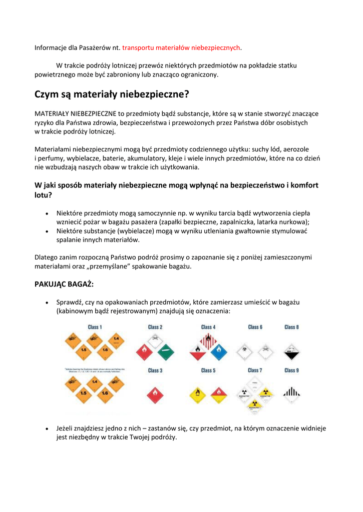 Informacje dla Pasażerów nt. transportu materiałów niebezpiecznych.