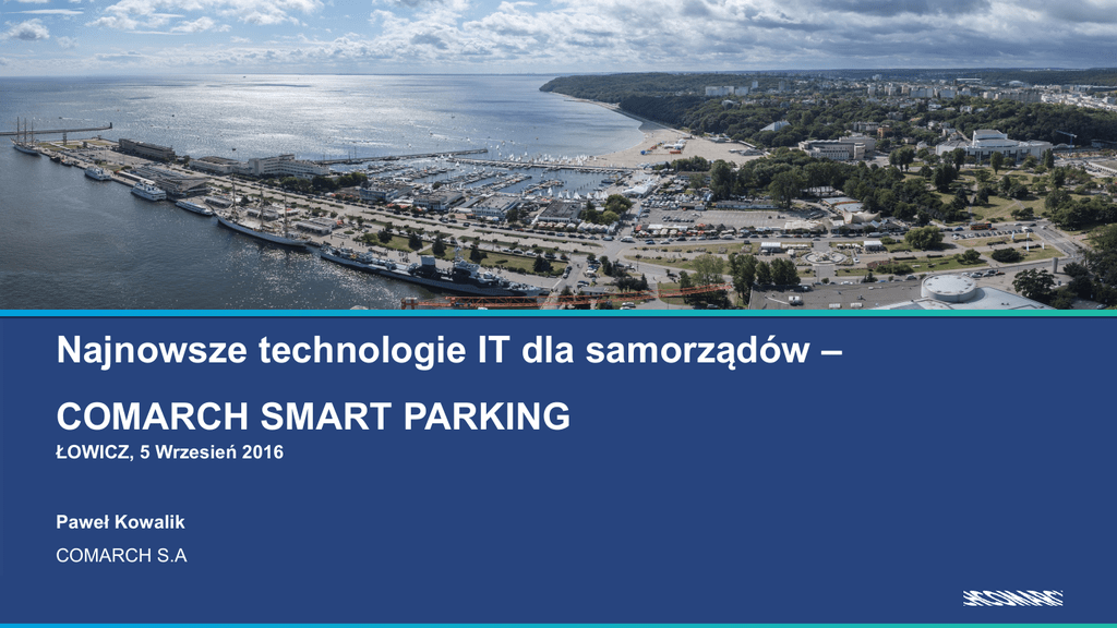 Najnowsze technologie IT dla samorządów – COMARCH SMART PARKING ŁOWICZ, 5 Wrzesień 2016 Paweł Kowalik COMARCH S.A „ Inteligentne miasto (ang. Smart City) miasto, które wykorzystuje technologie informacyjno-komunikacyjne, w celu zwiększenia interaktywności i wydajności infrastruktury miejskiej i jej komponentów składowych, a także do podniesienia świadomości mieszkańców oraz jakości i komfortu ich życia. “Smart Cities Study: International study on the situation of ICT, innovation and Knowledge in cities” KONCEPCJA PLATFORMY COMARCH SMART CITY ZAŁOŻENIA 1 Wykorzystanie istniejących danych, systemów, usług oraz infrastruktury 4 Różne kanały dostępu do usług 22 Integracja powyższych z nowymi elementami (smart) 5 Budowa platformy na bazie reużywalnych usług 3 Stworzenie platformy dla władz miejskich, mieszkańców, turystów oraz lokalnego biznesu 6 Wdrożenie Smart City to proces ARCHITEKTURA , Comarch Smart Parking Comarch IVA High level architecture Digital displays COMARCH SMART PARKING - funkcje 1 2 3 4 Identyfikacja wolnych miejsc parkingowych Przy wykorzystaniu sensorów, czujników, analityk wideo, informacja w czasie rzeczywistym Spersonalizowany algorytm wyszukiwania Niepełnosprawny, Początkujący kierowca, wielkość samochodu, miejsce dla rodziny, matki z dzieckiem Parkingi płatne i bezpłatne, Park&Ride Jako kryterium wyszukiwania 5 6 7 Rezerwacja miejsca, „Zablokowanie” miejsca w systemie na określony czas 8 Nawigacja do wybranego miejsca Skorelowane z czasem rezerwacji miejsca i czasem dojazdu Integracja z istniejącymi systemami Obsługa szlabanów, rozpoznawanie tablic rejestracyjnych, miejskie parkingi Park & Ride, prywatne parkingi, inne Sterowanie obłożeniem parkingów Równoważenie obłożenia, odciążenie ścisłego centrum, minimalizacja zbędnego ruchu w poszukiwaniu miejsc Naliczanie i pobór opłat za parkowanie, Funkcja „Strzeż auta” Wykrywanie miejsc parkingowych 1/2 • W przypadku obsługi analityki wideo, detekcja pustostanów / obłożenia jest oparta na pomiarze wolnego miejsca między pojazdami. • System pozwala oznaczyć strefy parkingowe / Miejsca dla osób niepełnosprawnych lub zarezerwowane dla określonego pojazdu / VIP. • Indywidualne preferencje , takie jak wielkość samochodu zdefiniowanym przez użytkownika w aplikacji mobilnej lub informacji o szerokości pojazdu mierzona przy wjeździe na parking / Zone - może być parametrem , aby znaleźć najlepsze miejsca do użytkownika końcowego. Wykrywanie miejsc parkingowych 2/2 • System może dodatkowo liczy pojazdów wjeżdżających i opuszczających parking. • Wynik wykrywania mogą być brane pod uwagę przy obliczaniu wakatów wyświetlanych w portalu web / aplikacji mobilnych lub na parkingach wyświetlaczy cyfrowych. • Liczenie może obejmować cały parkowanie podzielony na poszczególne części ( stref parkingowych ). ZASADA DZIAŁANIA MECHANIZMU DETEKCJI IVA 1/2 Architektura rozproszona 1 Możliwość obsługi dowolnej liczby kamer 2 Możliwość lokalnego przetwarzania danych Blisko źródła - kamery 3 4 5 Przetwarzanie centralne Dane z wielu parkingów Dwa tryby wykrywania miejsc Pojedyncze miejsca i strefy Automatyczne wykrywanie ruchu Optymalizacja zasobów ZASADA DZIAŁANIA MECHANIZMU DETEKCJI IVA 2/2 6 7 8 9 Wyniki w czasie rzeczywistym Wiarygodność przekazywanych informacji Uwzględnienie perspektywy Precyzja mechanizmu detekcji Uczenie się systemu Wskazywanie wolnych/zajętych miejsc, adaptacja do danej kamery Geolokalizacja miejsca Jednoznaczna identyfikacja AKTUALNIE PROTOTYPUJEMY ODPRONOŚĆ ANALITYK WIDEO NA RÓŻNE SCENARIUSZE BIZNESOWE Praca w nocy przy słabym oświetleniu Redukcja wpływu zjawisk atmosferycznych: zamglenia, mżawka, deszcz, śnieg, smog Eliminacja wpływu cech charakterystycznych dla danej kamery cienia słonecznego, drzew, słupów Wykrywanie i odpowiednie uwzględnianie w wynikach analityki widoczności obiektów innych niż samochód: jednoślady, ludzie i zwierzęta, pozostawione przedmioty, kamienie, kałuże, śnieg i lód, plamy płynu po zaparkowanym pojeździe SYSTEM INFORMACJI PARKINGOWEJ APLIKACJA MOBILNA Podgląd na dostępne parkingi: - Oznaczenie parkingu - Dostępne miejsca - Ulica - Rodzaj parkingu (płatny, bezpłatny, Park&Ride) - Podgląd umiejscowienia parkingu z jego obłożeniem - Nawigacja do parkingu Obsługa płatności Integracja z kartą miejską / biletem Rezerwacja miejsc parkingowych* Funkcja strzeż auto* PORTAL ZARZĄDCZY OPERATORA PARKINGU KOMPLEKSOWA INFORMACJA O PARKINGACH W JEDNYM MIEJSCU 1 • • • • • • • • • • Panel Administracyjny Integracja danych z wielu parkingów Panel Operatora Parkingu Zarządzanie Taryfami Zarządzanie obiektami, analityka, stan urządzeń Podsystem poboru opłat Integracja z Kartą Miejską Moduł Raportujący Zarządzanie bezpieczeństwem SOC Analizy Video 2 3 Dziękuję za uwagę! [email protected] COMARCH al. Jana Pawła II 39 a 31-864 Kraków Tel. +48 (12) 64 61 000 E-Mail: [email protected] www.comarch.com