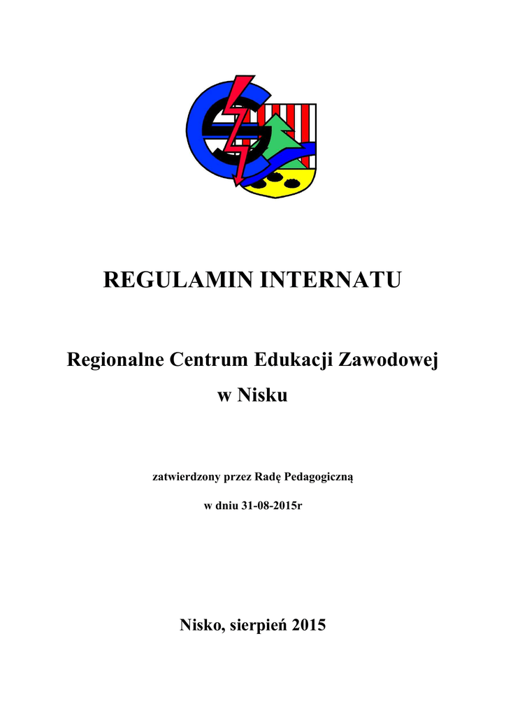 Regulamin Internatu - Regionalne Centrum Edukacji Zawodowej w