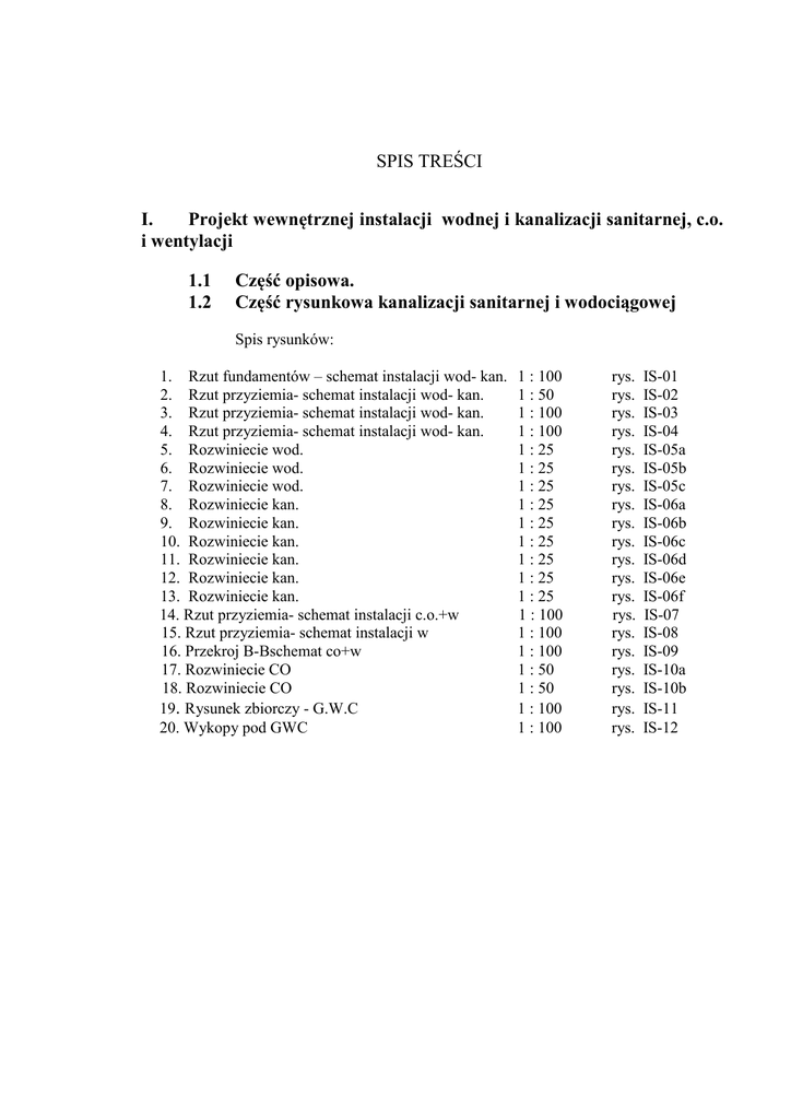 SPIS TREŚCI I. Projekt wewnętrznej instalacji wodnej i kanalizacji sanitarnej, c.o. i wentylacji 1.1 1.2 Część opisowa. Część rysunkowa kanalizacji sanitarnej i wodociągowej Spis rysunków: 1. Rzut fundamentów – schemat instalacji wod- kan. 2. Rzut przyziemia- schemat instalacji wod- kan. 3. Rzut przyziemia- schemat instalacji wod- kan. 4. Rzut przyziemia- schemat instalacji wod- kan. 5. Rozwiniecie wod. 6. Rozwiniecie wod. 7. Rozwiniecie wod. 8. Rozwiniecie kan. 9. Rozwiniecie kan. 10. Rozwiniecie kan. 11. Rozwiniecie kan. 12. Rozwiniecie kan. 13. Rozwiniecie kan. 14. Rzut przyziemia- schemat instalacji c.o.+w 15. Rzut przyziemia- schemat instalacji w 16. Przekroj B-Bschemat co+w 17. Rozwiniecie CO 18. Rozwiniecie CO 19. Rysunek zbiorczy - G.W.C 20. Wykopy pod GWC 1 : 100 1 : 50 1 : 100 1 : 100 1 : 25 1 : 25 1 : 25 1 : 25 1 : 25 1 : 25 1 : 25 1 : 25 1 : 25 1 : 100 1 : 100 1 : 100 1 : 50 1 : 50 1 : 100 1 : 100 rys. rys. rys. rys. rys. rys. rys. rys. rys. rys. rys. rys. rys. rys. rys. rys. rys. rys. rys. rys. IS-01 IS-02 IS-03 IS-04 IS-05a IS-05b IS-05c IS-06a IS-06b IS-06c IS-06d IS-06e IS-06f IS-07 IS-08 IS-09 IS-10a IS-10b IS-11 IS-12 I. INSTALACJA WEWNĘTRZNA WOD. – KAN. 1.1 Część opisowa. PODSTAWA OPRACOWANIA : - Uzgodnienia z inwestorem - Uzgodnienia dotyczące zastosowanych urządzeń i materiałów - Obowiązujące normy - Warunki techniczne DANE OGÓLNE I ZAKRES OPRACOWANIA Opracowanie obejmuje instalacje wewnętrzne sanitarne w budynku hali sportowej w Grudziądzu w tym: - wody zimnej - kanalizację sanitarną wewnętrzną - ciepłej wody użytkowej - Instalacje ppoż Projektowany Budynek Hali Sportowej będzie częścią zespołu budynków szkoły w Grudziądzu , który stanowi jedną całość. Hala będzie połączona z budynkiem projektowanym łącznikiem hali z istniejącymi budynkami. Pierwszą kondygnacje będą stanowić: pomieszczenie hali sportowej, pomieszczenia sanitarne (szatnie, umywalnie, oraz pomieszczenia magazynowe). INSTALACJA WODY CIEPŁEJ I ZIMNEJ Instalacja obejmuje – wodę zimną, ciepłą. Zasilenie projektowanego budynku odbywać się będzie z przyłącza wodociągowego DN 50x3,0 PE. Bezpośrednio po wejściu do budynku zamontować z układ pomiarowy DN 40 o wydajności 20 m3/h. Przed i za wodomierzem zastosować zawory odcinające oraz zawór zwrotny. Przyłącz będzie obsługiwał instalację wodociągową oraz instalacje ppoż. Piony wodociągowe prowadzić w szachtach ściennych – woda zimna. Zawory odcinające zamontowane również przy płuczkach ustępowych. Przewody główne wody zimnej oraz instalacje wody zimnej wykonać z rur polipropylenowych PP-R. Instalację zimnej wody wykonać z rur polipropylenowych PP-R typ3 w klasie PN 10. Instalację ciepłej wody i cyrkulacji wykonać z rur polipropylenowych stabi wykonanej na bazie rury podstawowej PN 20. Połączenia rur w instalacji c/z wody i cyrkulacji dokonać za pomocą kształtek polipropylenowych w klasie PN25 o obniżonych współczynnikach oporów miejscowych. Dopuszcza się wykonanie instalacje wody zimnej z rur miedzianych w/g ISO/SF - Cu/2.0090 łączone lutem miękkim - łączniki/ łuki, odgałęzienia z typowych kształtek miedzianych / w/g DIN 17660. Przewody prowadzić w „ peszelu „ w posadzce, podchodzić do przyborów w bruzdach ściennych pod tynkiem. Podłączenia przyborów dokonać w wykorzystaniem trójników redukcyjnych / system trójnikowy. Minimalny promień gięcia rur wynosi 10 średnic zewnętrznych rur, Prędkość przepływu w podejściach do punktów czerpalnych nie przekracza 2,5 m/s. Przejścia przewodów poziomych i pionów przez ściany i stropy w tulejach ochronnych dwa razy większych od średnicy przewodu , przestrzeń między przewodem właściwym a tuleją wypełnić kitem elastycznym . Rury mocowane za pomocą uchwytów z tworzywa sztucznego lub obejm metalowych z podkładką. Przewody rozprowadzające po wierzchu ścian izolować pianką polietylenową typu Poolflex – grubość izolacji 6 mm jako zabezpieczenie przed roszeniem. Obliczenie zapotrzebowania wody zimnej Woda zimna w budynku zaspakajać będzie potrzeby socjalno-bytowe oraz higieniczno-sanitarne. Wielkość średniego dobowego zapotrzebowania wody na cele socjalno-bytowe i higieniczno-sanitarne obliczono wg Rozporządzenia Ministra Infrastruktury z dnia 14 stycznia 2002r. W sprawie określenia przeciętnych norm zużycia wody. wskaźniki jak dla szkol (około 500 osób ) Qśrd = 25 l / osobę / dobę Nd = 1.4 Nh = 3,20 n = 500 a) Średnie dobowe zapotrzebowanie zimnej wody: Qśrd = 500 x 25 = 12500 l/d = 12,50 m³/ d b) Maksymalne dobowe zapotrzebowanie zimnej wody: Qmaxd = Qśrd x Nd Qmaxd = 12,50*1,4=17,50 m³/d c) Średnie godzinowe zapotrzebowanie zimnej wody: Qśrdh = 17,50/8 = 2,19 m³/h d) Maksymalne godzinowe zapotrzebowanie zimnej wody: Qmaxh = Qmaxd x Nh / 8 Qmaxh = 17,50*3,20/8= 7,00 m³/h Przepływ obliczeniowy wody Całkowite zapotrzebowanie wody zimnej do celów sanitarnych: Punkty poboru wody Umywalka Miska ustępowa Pisuar Natrysk Zwężka Ilość [szt.] 22 13 qn [dm3/s] 0,14 0,13 Ilość x qn 2 11 4 0,3 0,3 0,3 3,3 0,2 1,2 3,08 1,69 ∑qn wody = 9,47 [dm3/s] Wyznaczenie przepływu obliczeniowego wody q = 0,682 x ∑qn exp 0,45 - 0,14 gdzie: qn – normatywny wypływ z punktów czerpalnych [dm3/s]. q = 1,74 dm3/s = 1,74 x 3,6 = 6,26 m3/h Źródło ciepła dla projektowanej instalacji c.w.u. Źródłem ciepła będzie zasobnik Vitocel 340l, max temperatura robocza 90 stopni C, max ciśnienie robocze 7 bar, wysokość 2400 mm, średnica 800 mm, moc grzałki elektrycznej 12 kW Pakiet EC 138. Na wyjściu z zasobnika zastosować zawór trójdrogowy termostatyczny . Zabezpieczyć zasobnik cieplej wody przed wzrostem ciśnienia za pomocą zaworu bezpieczeństwa i naczynia przeponowego. Zapotrzebowanie wody zimnej na cele p.poż. W budynku zastosowano dwa hydranty przeciwpożarowe Ø 25. Zasilone są przewodem stalowym DN 50 z sieci wodociągowej. Przejśc