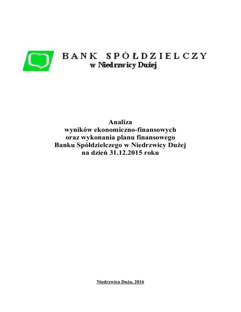 Analiza Wyników 31.12.2015 - Bank Spółdzielczy w Niedrzwicy Dużej