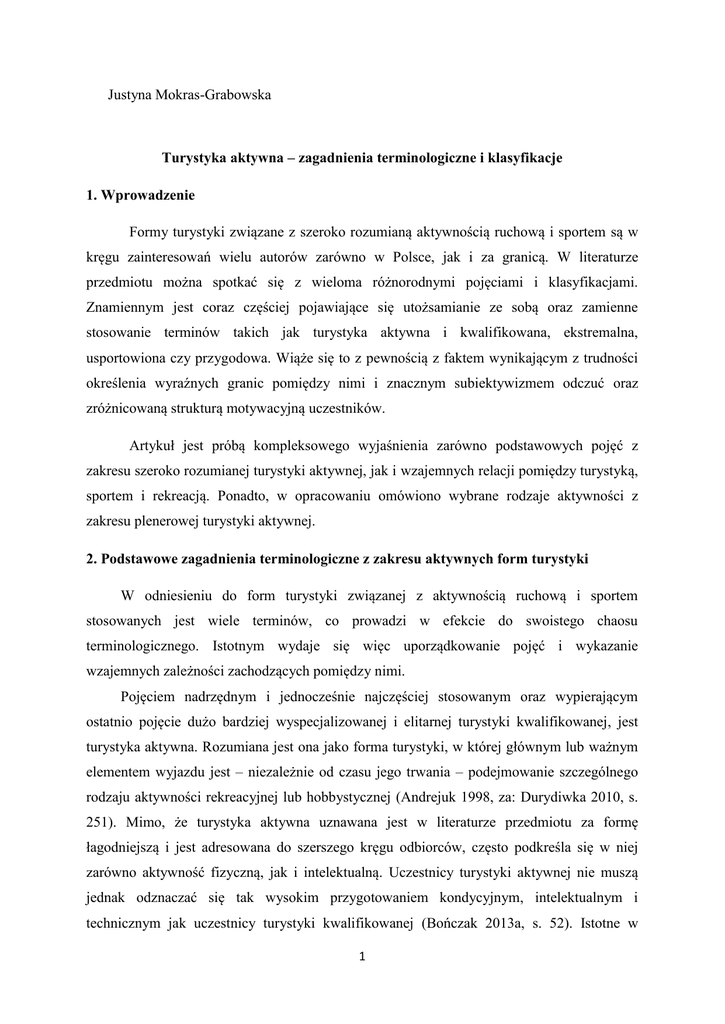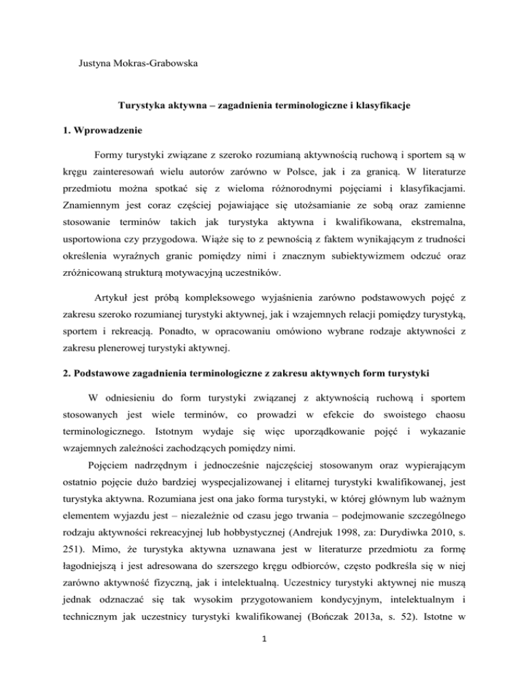 Turystyka aktywna - zagadnienia terminologiczne i klasyfikacje (PDF