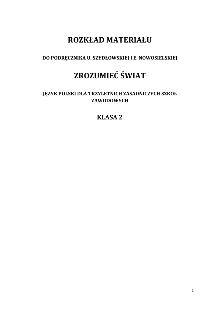 „Zrozumieć świat” - Rozkład materiału, klasa 2