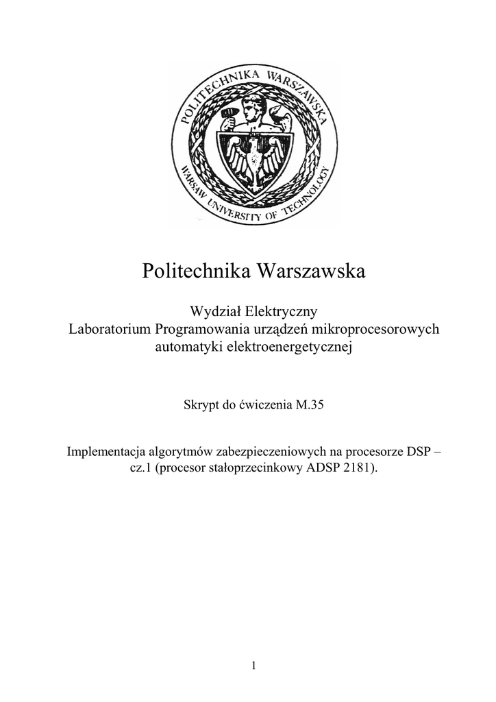 Implementacja algorytmów zabezpieczeniowych na procesorze DSP –