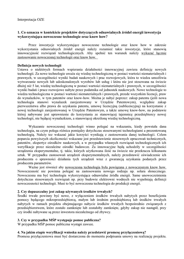 Pytania i odpowiedzi - oze - RPOWP 2007-2013