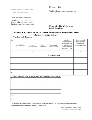 Wniosek o przydział lokalu do remontu we własnym