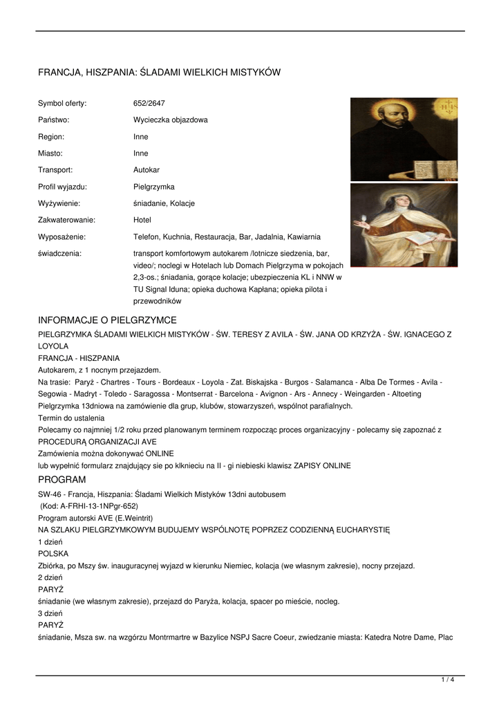 PIELGRZYMKA ŚLADAMI WIELKICH MISTYKÓW - ŚW. TERESY Z AVILA - ŚW. JANA OD KRZYŻA - ŚW. IGNACEGO Z