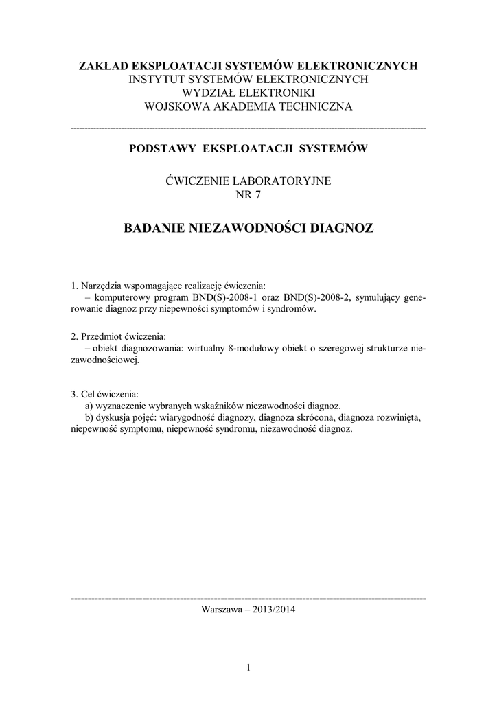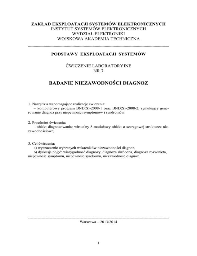 badanie niezawodności diagnoz - Wojskowa Akademia Techniczna