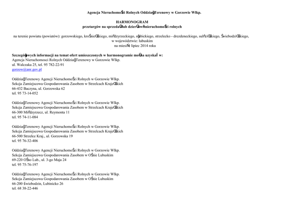Agencja Nieruchomości Rolnych Oddział Terenowy w Gorzowie