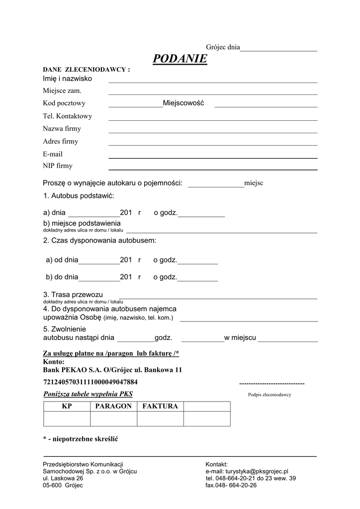 podanie - PKS Grójec