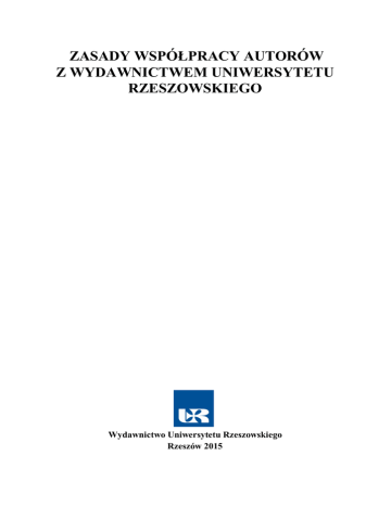 12/2014 Rektora Uniwersytetu Rzeszowskiego z dnia 28.02.2014 r. w sprawie finansowania wydawnictw Uniwersytetu Rzeszowskiego).