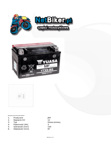1. Producent JMT 2. Napięcie [V] 12 3. Typ litowo