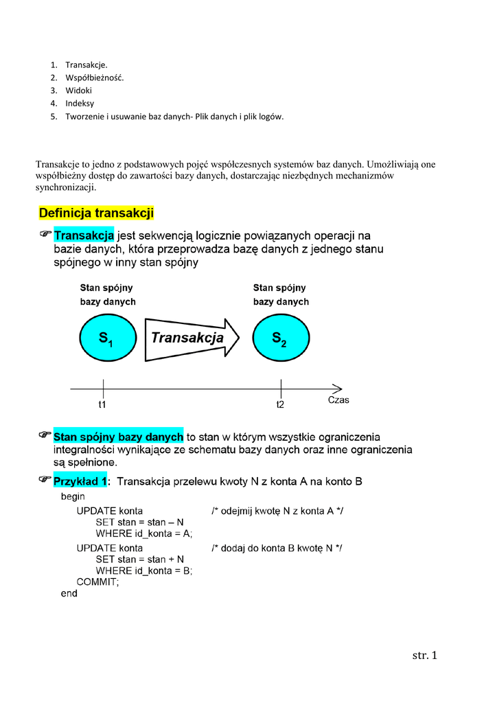 Transakcje to jedno z podstawowych pojęć współczesnych systemów baz danych. Umożliwiają one