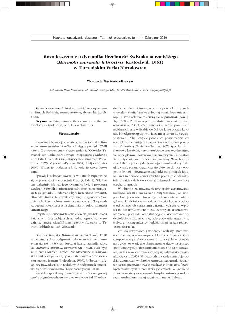 Rozmieszczenie a dynamika liczebności świstaka tatrzańskiego