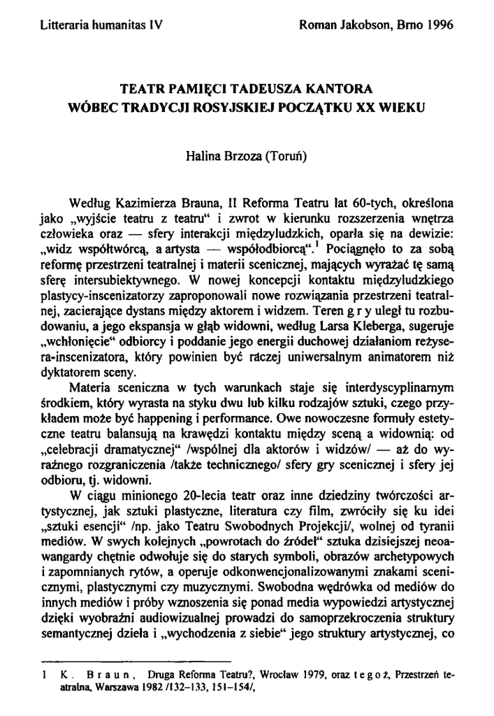 Litteraria humanitas IV Roman Jakobson, Brno 1996 TEATR