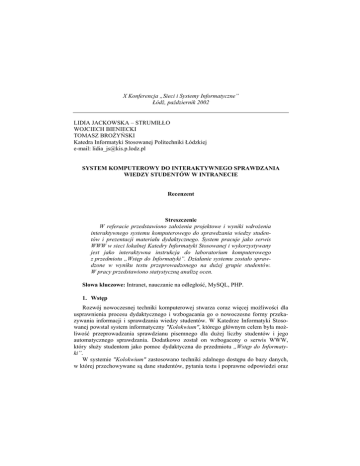 System komputerowy do interaktywnego sprawdzania wiedzy
