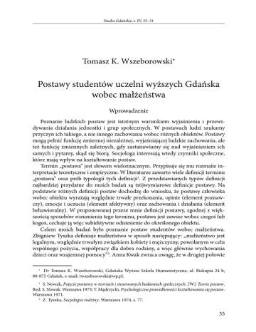 Postawy studentów uczelni wyższych Gdańska wobec małżeństwa