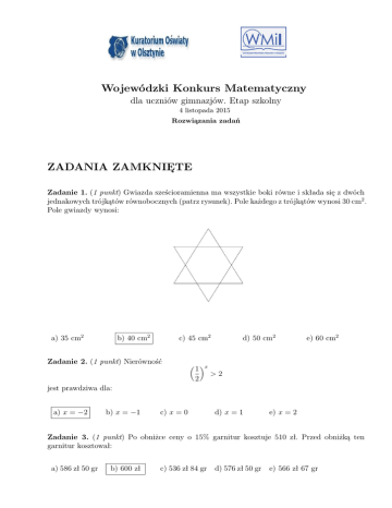 W przypadku innych sposobów rozwiązywania zadań prosimy o punktację zgodną z Państwa