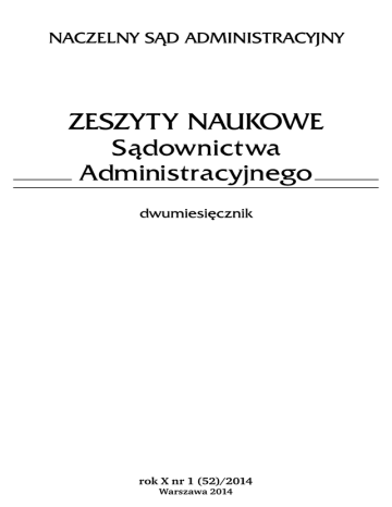rok X nr 1 (52)/2014 Warszawa 2014 WYDAWCA Naczelny Sąd Administracyjny KOMITET REDAKCYJNY Barbara Adamiak, Stefan Babiarz, Stanisław Biernat, Irena Chojnacka, Jan Filip, Andrzej Gomułowicz, Bogusław Gruszczyński, Roman Hauser, Małgorzata Sawicka-Jezierczuk (sekretarz redakcji), Andrzej Skoczylas, Janusz Trzciński (redaktor naczelny), Maria Wiśniewska, Andrzej Wróbel Korekta: Justyna Woldańska ADRES REDAKCJI Naczelny Sąd Administracyjny 00-011 Warszawa, ul. G.P. Boduena 3/5 tel. 22 826-74-88, fax 22 826-74-54, e-mail: [email protected] © Copyright by Naczelny Sąd Administracyjny Warszawa 2014 ISSN 1734-803X Nr indeksu 204358 „Zeszyty Naukowe Sądownictwa Administracyjnego” znajdują się w wykazie czasopism punktowanych przez Ministerstwo Nauki i Szkolnictwa Wyższego na potrzeby oceny parametrycznej jednostek naukowych. Liczba punktów za publikację wynosi 6. W celu upowszechniania za granicą opracowań ukazujących się w „Zeszytach Naukowych Sądownictwa Administracyjnego” (ZNSA) Wydawca uzgodnił z redakcją „The Central European Journal of Social Sciences and Humanities” (CEJSH) internetową publikację ich streszczeń w języku angielskim. Wersją podstawową (referencyjną) czasopisma jest wersja papierowa. LexisNexis Polska Sp. z o.o. Adgar Park West, Al. Jerozolimskie 181, 02-222 Warszawa tel. 22 572 95 00, faks 22 572 95 68 Infolinia: 22 572 99 99 www.lexisnexis.pl.; e-mail: [email protected] Księgarnia Internetowa dostępna ze strony www.lexisnexis.pl Druk ukończono w lutym 2014 roku. Nakład 1000 egz. SPIS TREŚCI STUDIA I ARTYKUŁY Dr hab. Małgorzata Jaśkowska (profesor, Uniwersytet Kardynała Stefana Wyszyńskiego w Warszawie) Dostęp do informacji publicznej w orzecznictwie sądów administracyjnych (wybrane problemy) .............................................................................................................................. Summary .................................................................................................................................... 9 24 Dr hab. Joanna Sieńczyło-Chlabicz (profesor, Uniwersytet w Białymstoku) Aspekty proceduralne i materialne unieważnienia prawa ochronnego na znak towarowy ............................................................................................................................... Summary .................................................................................................................................... 25 39 Dr Agnieszka Piskorz-Ryń (adiunkt, Uniwersytet Kardynała Stefana Wyszyńskiego w Warszawie, Wydział Prawa i Administracji) Zasady ponownego wykorzystywania informacji publicznej będącej utworem w rozumieniu ustawy z dnia 4 lutego 1994 r. o prawie autorskim i prawach pokrewnych .......................................................................................................... Summary .................................................................................................................................... 41 56 Mgr Tomasz Dudek (prokurator) Zawieszenie biegu terminu przedawnienia zobowiązania podatkowego ze względu na tok postępowania karnego skarbowego – artykuł dyskusyjny ..................................... Summary .................................................................................................................................... 58 76 Mgr Krzysztof Brysiewicz (radca prawny) Kiedy przedsiębiorstwo jest powiązane – ubieganie się o środki europejskie przez mikro-, małe i średnie przedsiębiorstwa ............................................................................ Summary .................................................................................................................................... 78 99 ORZECZNICTWO I. II. III. Trybunał Sprawiedliwości Unii Europejskiej (wybór i opracowanie: Andrzej Wróbel) Podatek „VAT” – Dyrektywa 2006/112/WE – Artykuły 132–134 i 168 – Zwolnienia – Usługi edukacyjne świadczone przez podmioty prawa prywatnego w celu zarobkowym – Prawo do odliczenia Wyrok TSUE z dnia 28 listopada 2013 r. w sprawie C-319/12 Minister Finansów przeciwko MDDP sp. z o.o. Akademia Biznesu sp. komandyt. ............................................. 101 Europejski Trybunał Praw Człowieka (wybór i opracowanie: Agnieszka Wilk-Ilewicz) Prawo własności a ochrona środowiska Wyrok ETPC z dnia 29 marca 2010 r. w sprawie Depalle przeciwko Francji (skarga nr 34044/02) ................................................................................................................... 110 Trybunał Konstytucyjny (wybór: Irena Chojnacka, opracowanie: Mieszko Nowicki) Wyrok TK z dnia 5 grudnia 2013 r. (sygn. akt K 27/13) [dot. praw nabytych do świadczenia pielęgnacyjnego] ......................................................................................... 113 IV. V. VI. VII. Sąd Najwyższy (wybór i opracowanie: Dawid Miąsik) Postanowienie SN z dnia 28 listopada 2013 r. (sygn. akt I KZP 15/13) [dot. charakteru prawnego obowiązku notyfi kacji przepisów technicznych] ............................................. Naczelny Sąd Administracyjny i wojewódzkie sądy administracyjne A. Orzecznictwo Naczelnego Sądu Administracyjnego (wybór: Stefan Babiarz, opracowanie: Marcin Wiącek) 1. Uchwała składu siedmiu sędziów NSA z dnia 25 listopada 2013 r. (sygn. akt I OPS 6/13) [dot. terminu ustalenia opłaty adiacenckiej z tytułu wzrostu wartości nieruchomości w wyniku jej podziału] .................................................................... 2. Uchwała składu siedmiu sędziów NSA z dnia 25 listopada 2013 r. (sygn. akt I OPS 12/13) [dot. dopuszczalności skargi na bezczynność SKO w postępowaniu w sprawie aktualizacji opłaty rocznej z tytułu użytkowania wieczystego] .............. B. Orzecznictwo wojewódzkich sądów administracyjnych (wybór: Bogusław Gruszczyński, opracowanie: Marcin Wiącek) 1. Wyrok WSA w Opolu z dni