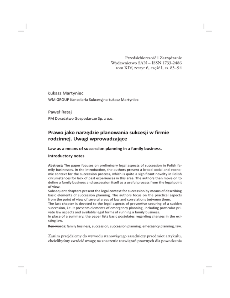 sukcesją a planowaniem spadkowym, „Magazyn Firm Rodzinnych”, nr 5.