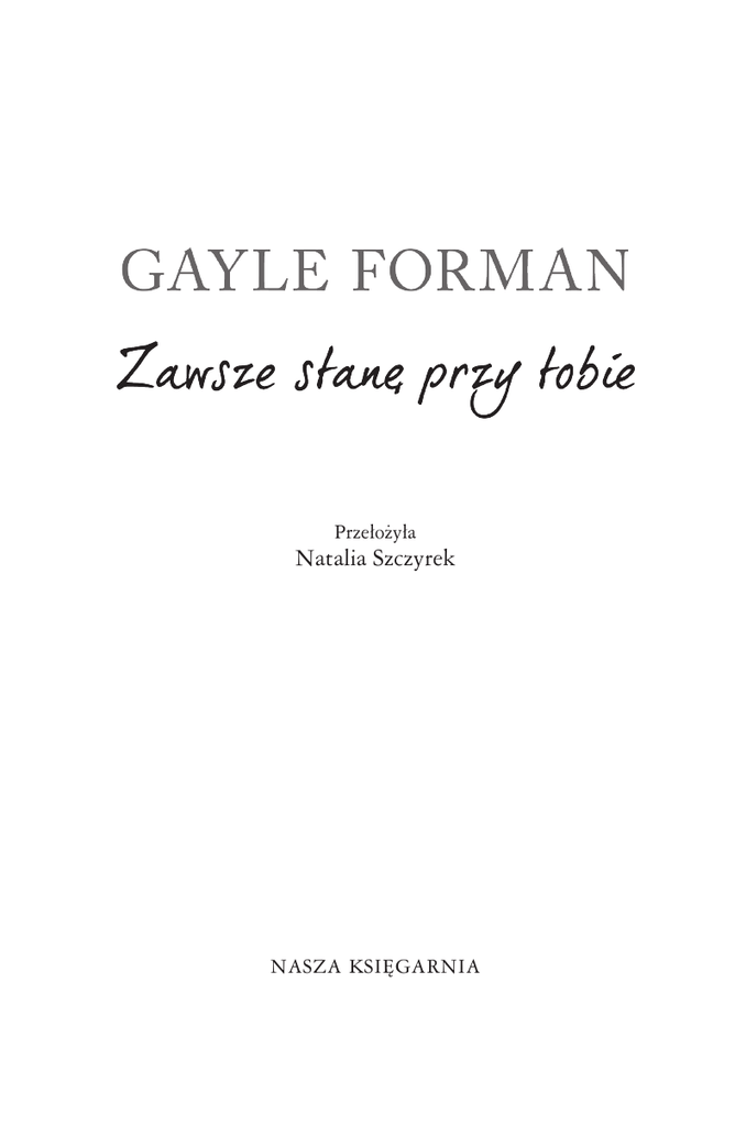 Przełożyła Natalia Szczyrek Nasza Księgarnia Tytuł oryginału angielskiego Sisters in Sanity Copyright © 2007 by Gayle Forman © Copyright for the Polish edition by Wydawnictwo „Nasza Księgarnia”, Warszawa 2016 Projekt okładki: Marta Weronika Żurawska-Zaręba Zdjęcia na okładce: Dziewczyna © Jovana Rikalo/Trevillion Images Para © Mandy Erskine/Arcanel Images Rozdział pierwszy To miała być wycieczka do Wielkiego Kanionu i wcale nie chciałam na nią jechać. W środku lata temperatura na pustyni wynosi pewnie z pięć tysięcy stopni – nie ma mowy, żebym to przetrwała. Z w ł a s z c z a że miałabym spędzić dwa dni w samochodzie z ojcem i macochą, która kombinuje tylko, o co się do mnie przyczepić: o włosy – fioletoworóżowe z czarnymi pasemkami albo na odwrót, zależy jak patrzeć; o tatuaże – celtycką bransoletkę, wianuszek ze stokrotek na kostce i serce w miejscu, którego nigdy nie zobaczy – oraz o to, że wywieram zły wpływ na Billy’ego, mojego przyrodniego brata, który, na miłość boską, jest jeszcze maluchem i pewnie uważa moje dziary za rysunki, o ile je w ogóle zauważył. A w dodatku chodziło o weekend Święta Pracy − ostatnie dni swobody przed trzecią klasą liceum – na który kroiła się wielka impreza. Gram na gitarze w jednym zespole, nazywa się Clod, i mieliśmy wystąpić na festiwalu Indian Summer w Olympii z gromadą naprawdę poważnych kapel, takich, co podpisują kontrakty płytowe. To była największa szansa, jaka nam się trafiła w życiu, i ogromny krok naprzód po występach na domówkach albo w knajpach, gdzie do tej pory grywaliśmy. Naturalnie do macochy to nie docierało. Jej zdaniem punk rock to coś w rodzaju kultu diabła, a odkąd urodził się Billy, zabroniła mi ćwiczyć w piwnicy, żebym nie zwiodła na manowce jego niewinnej duszy. Teraz mogę ćwiczyć tylko w piwnicy u Jeda, na co macocha też się krzywi, bo Jed ma dziewiętnaście lat i mieszka – a c h ! – z grupą ludzi niebędących jego rodzicami. Dlatego uprzejmie podziękowałam za udział w wycieczce. Okej, może nie tak całkiem uprzejmie. Możliwe, że moje słowa brzmiały, cytuję: „Wolałabym żreć szkło”, co miało tylko taki efekt, że poleciała na skargę do taty, który spytał swoim zmęczonym głosem, dlaczego jestem taka niegrzeczna. Opowiedziałam o występie. Dawno, dawno temu interesował się takimi rzeczami jak muzyka, ale teraz zdjął tylko okulary, ścisnął nasadę nosa i oświadczył, że nie ma dyskusji. Jedziemy całą rodziną. Nie zamierzałam się poddać tak łatwo. Wypróbowałam wszystkie swoje sztuczki: krzyki, ciche dni, rzucanie talerzami. Wszystko na nic. Macocha odmówiła udziału w sporze, więc zostaliśmy tylko ja kontra tato, a nie umiałam mu dawać w kość, więc się poddałam. Przekazałam nowinę kapeli. Erik, nasz wiecznie upalony perkusista, mruknął tylko: „Kurde, to słabo”, ale 6 Denise i Jed naprawdę się zdołowali. „Zasuwaliśmy tak ciężko – t y zasuwałaś tak ciężko” − stwierdził Jed; na widok jego rozczarowania pękło mi serce. Miał rację. Trzy lata temu nie odróżniałam akordu C od F, a teraz grałam na wielkim koncercie. To znaczy miałam grać. Bo teraz Clod miał wystąpić na festiwalu Indian Summer jako trio. Czułam się totalnie załamana, że mnie to ominie – chociaż było mi całkiem przyjemnie, że Jed wydaje się zmartwiony z tego powodu. Powinnam zajarzyć, że coś tu nie gra, kiedy rano tamtego dnia tato sam zaczął pakować łajnobusa – koszmarnego sraczkowatego minivana, na którego kupno macocha się uparła przed urodzeniem Billy’ego. Jej samej i Billy’ego nigdzie nie było widać. – Boże, ona zawsze się spóźnia. Wiesz, że to forma kontroli? – Dzięki za psychoanalizę, Brit, ale mama z nami nie jedzie. – Ona nie jest moją mamą, a w ogóle co jest grane? Mówiłeś, że to rodzinna wycieczka i dlatego m u s z ę j e c h a ć, muszę odpuścić Indian Summer. Skoro oni się wymiksowali, ja też zostaję. – To jest rodzinna wycieczka – odpowiedział, wstawiając moją walizkę na tył. – Ale dwa dni w samochodzie to za dużo dla Billy’ego. Wsiądą do samolotu i spotkają się z nami na miejscu. 7 N a p r a w d ę powinnam była skumać, że coś jest nie halo, kiedy dojeżdżając do Las Vegas, tato zaproponował przerwę. W czasach, gdy była z nami mama, robiliśmy właśnie tego rodzaju rzeczy. W pięć minut pakowaliśmy się do wozu i uderzaliśmy do Vegas albo do San Francisco. Pamiętam pewną noc podczas fali upałów, kiedy żadne z nas nie mogło zasnąć; o pierwszej nad ranem wrzuciliśmy śpiwory do samochodu i pojechaliśmy w góry, gdzie wiała idealna bryza. Minęły wieki od czasów, kiedy tato był taki fajny. Macocha mu wmówiła, że spontaniczność równa się nieodpowiedzialność. Kupił mi lunch nad sztucznym kanałem w hotelu Bellagio i nawet uśmiechnął się lekko, kiedy zaczęłam się nabijać z jakichś turystów. Potem poszliśmy do tandetnego kasyna w centrum. Tato powiedział, że nikt nie będzie się czepiał, że mam dopiero szesnaście lat, i dał mi dwadzieścia dolców, żebym się pobawiła na automatach. Nasza mała wycieczka robiła się całkiem fajna. Kiedy jednak przyuważyłam, jakim wzrokiem obserwuje mnie podczas gry, mimo woli pomyślałam, że wydaje się, bo ja wiem, pusty; jakby ktoś wziął odkurzacz i wyssał z niego duszę. Nawet się nie ucieszył, kiedy wygrałam trzydzieści pięć dolców, tylko się uparł, że je weźmie na przechowanie. Kolejna czerwona flaga, na którą nie zwróciłam uwagi. Durna kretynka; pierw- 8 szy raz od wieków po prostu się wygłupiałam z tatą, za jakim tęskniłam od lat. Kiedy wyjeżdżaliśmy z Vegas, stał się milczący i ponury, całkiem jak po tamtym z mamą. Widziałam, jak mocno ściska kierownicę, i wszystko razem wydało się dziwne i niepokojące, więc trochę się zamyśliłam, p