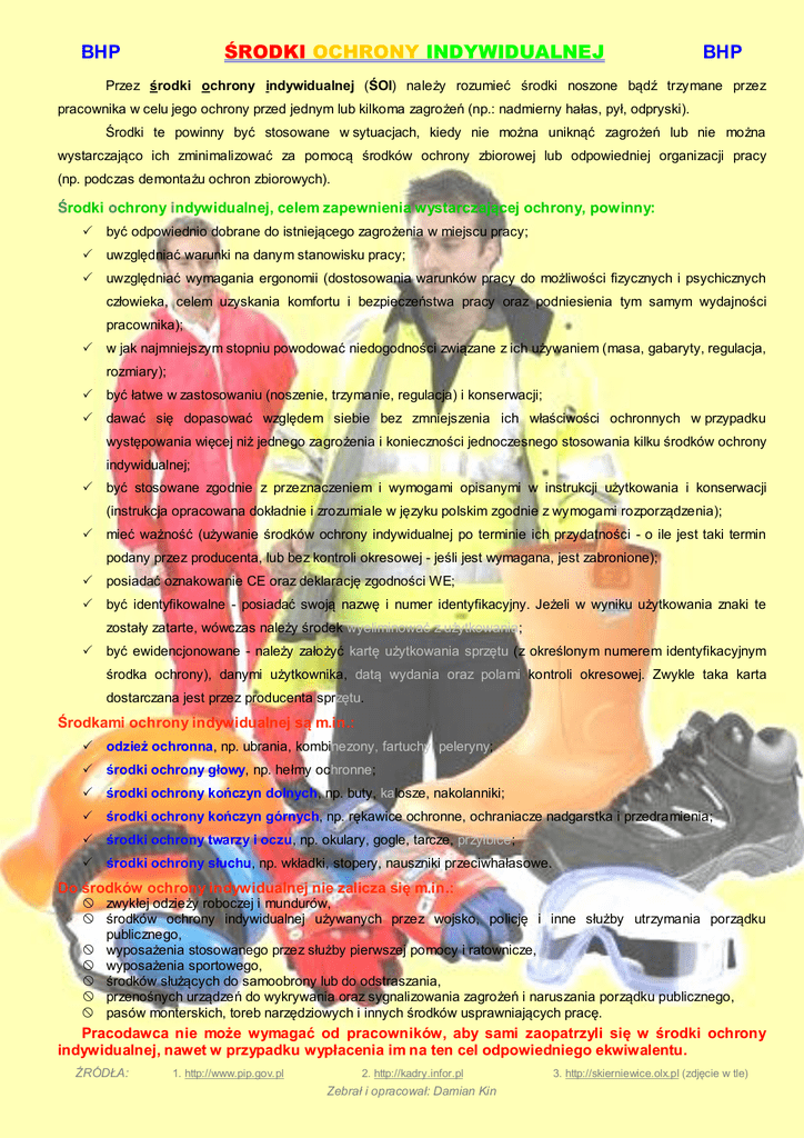 BHP ŚRODKI OCHRONY INDYWIDUALNEJ BHP