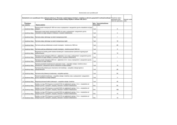 Zestawienie cen ryczałtowych Zestawienie cen ryczałtowych dla realizacji zadania pn. Remonty i modernizacja instalacji i urządzeń w zakresie gospodarki wodnej-kanalizacji Przedmiar robót – deszczowej na terenie miasta Piekary Śląskie w okresie roku 2012 r. planowana ilość Wartość robót robót do wykonania netto Podstawa L.p. wyceny Nazwa zadania jedn. cena jednostkowa miary netto kosztorys ślepy Remont studni rewizyjnej Ø 1000 mm wraz z wykopaniem i zasypaniem gruntu niezależnie od jego kategorii 1 szt 6 2 kosztorys ślepy Wykonanie nowej studni rewizyjnej Ø 1000 mm wraz z wykopaniem i zasypaniem gruntu niezależnie od jego kategorii z odwozem i kosztami składowania 1 szt 4 3 kosztorys ślepy Wymiana włazu żeliwnego na studni rewizyjnej typ lekki 1 kpl 1 4 kosztorys ślepy Wymiana włazu żeliwnego na studni rewizyjnej typ ciężki 1 kpl 16 5 kosztorys ślepy Wymiana pokrywy żelbetowej na studni rewizyjnej – średnice do 1000 mm 1 szt 26 6 kosztorys ślepy Wymiana pokrywy żelbetowej na studni rewizyjnej – średnice ponad 1000 mm 1 szt 5 kosztorys ślepy Regulacja do niwelety jezdni włazów kanałowych z zastosowaniem pierścieni regulacyjnych (dystansowych) 1 kpl 15 kosztorys ślepy Wymiana studni rewizyjnej 1000 mm – głębokość 1,5 m wraz z wykopaniem i zasypaniem gruntu niezależnie od jego kategorii z odwozem ziemi i kosztami składowania 1 szt 1 kosztorys ślepy Wymiana studni rewizyjnej 1000 mm – głębokość 3,0 m wraz z wykopaniem i zasypaniem gruntu niezależnie od jego kategorii 1 szt 1 10 kosztorys ślepy Wymiana studzienki ściekowej lub wykonanie nowej – wszystkie rodzaje i średnice wraz z wykopaniem i zasypaniem gruntu niezależnie od jego kategorii 1 szt 13 11 kosztorys ślepy Wymiana kraty żeliwnej (po zniszczeniu lub kradzieży) – wszystkie rodzaje łącznie z krawężnikowymi 1 szt 26 12 kosztorys ślepy Wymiana kraty żeliwnej na betonową – wszystkie wymiary 1 szt 50 13 kosztorys ślepy Remont studzienki ściekowej – wszystkie rodzaje i średnice wraz z wykopaniem i zasypaniem gruntu niezależnie od jego kategorii 1 szt 3 14 kosztorys ślepy Regulacja pionowa kratek ściekowych – wszystkie rodzaje i średnice 1 szt 45 15 kosztorys ślepy Kanały z rur typu PCV łączone na wcisk Ø 160 mm głębokość wykopu 1,5 m – niezależnie od kategorii gruntu z wykopem, zasypką, odwozem i kosztami składowania 1mb 60 16 kosztorys ślepy Kanały z rur typu PCV łączone na wcisk Ø 200 mm głębokość wykopu 1,5 m – niezależnie od kategorii gruntu z wykopem, zasypką, odwozem i kosztami składowania 1mb 100 17 kosztorys ślepy Kanały z rur typu PCV łączone na wcisk Ø 250 mm głębokość wykopu 1,5 m – niezależnie od kategorii gruntu z wykopem, zasypką, odwozem i kosztami składowania 1mb 10 18 kosztorys ślepy Kanały z rur typu PCV łączone na wcisk Ø 315 mm głębokość wykopu 1,5 m – niezależnie od kategorii gruntu z wykopem, zasypką, odwozem i kosztami składowania 1mb 10 1 7 8 9 Zestawienie cen ryczałtowych 19 kosztorys ślepy Kanały z rur typu PCV łączone na wcisk Ø 400 mm głębokość wykopu 1,5 m – niezależnie od kategorii gruntu z wykopem, zasypką, odwozem i kosztami składowania 1mb 10 20 kosztorys ślepy Kanały z rur typu PCV łączone na wcisk Ø 315 mm głębokość wykopu 3,0 m – niezależnie od kategorii gruntu z wykopem, zasypką, odwozem i kosztami składowania 1mb 10 21 kosztorys ślepy Kanały z rur typu PCV łączone na wcisk Ø 400 mm głębokość wykopu 3,0 m – niezależnie od kategorii gruntu z wykopem, zasypką, odwozem i kosztami składowania 1mb 10 22 kosztorys ślepy Rozebranie nawierzchni z mieszanek mineralno – bitumicznych – wszystkie grubości 1m2 250 23 kosztorys ślepy Rozebranie nawierzchni z kostki betonowej – wszystkie grubości i rodzaje 1m2 100 24 kosztorys ślepy Rozebranie krawężnika – wszystkie grubości i rodzaje 1 mb 10 25 kosztorys ślepy Rozebranie obrzeża – wszystkie grubości i rodzaje 1 mb 10 26 kosztorys ślepy Rozebranie podbudowy gr. 20 cm 1 m2 300 27 kosztorys ślepy Ułożenie nawierzchni z kostki betonowej – materiał z odzysku, wszystkie grubości i rodzaje 1m2 100 28 kosztorys ślepy Ułożenie nawierzchni z kostki betonowej bez materiału – wszystkie grubości i rodzaje 1m2 40 29 kosztorys ślepy Odtworzenie podbudowy gr. 20 cm. 1m2 300 30 kosztorys ślepy Wywiezienie ziemi, gruzu i składowanie dot. pozycji 22 – 26 1m3 100 31 kosztorys ślepy Remont cząstkowy nawierzchni asfaltowo-betonowej 1t 39 32 kosztorys ślepy Ułożenie krawężnika na ławie betonowej – bez wartości materiału lub materiał z odzysku, wszystkie grubości i rodzaje 1 mb 33 kosztorys ślepy 10 34 kosztorys ślepy Ułożenie obrzeża – bez wartości materiału lub materiał z odzysku, wszystkie grubości i rodzaje Naniesienie na zasoby Ośrodka Dokumentacji Geodezyjno – Kartograficznej urządzeń kanalizacyjnych wraz z założeniem lub uzupełnieniem kart inwentaryzacyjnych studzienek kanalizacyjnych 35 kosztorys ślepy Naniesienie na zasoby Ośrodka Dokumentacji Geodezyjno – Kartograficznej urządzeń kanalizacyjnych - kanały 1 mb 10 36 kosztorys ślepy Czyszczenie rowów 1 mb 700 1 -r-g 700 podana w 37 poniższej tabelce Stawka r-g z narzutami dla prac nie objętych w/w wykazem 1 mb 10 1 szt. 4 Razem: stawka roboczogodziny z poz. 37 została wyliczona wg następujących parametrów: Stawka roboczogodziny 1 r-g Koszty ogólne do stawki r-g % Zysk do stawki r-g wraz z kosztami ogólnymi % Razem r-g z narzutami 1 r-g Uwaga: Przyjęte w kosztorysie ilości przedmiarowe są szacunkowe. Faktyczny zakres robót realizowany będzie w zależności od potrzeb Zamawiającego na podstawie zleceń cząstkowych i awaryjnych. + 23 % VAT =