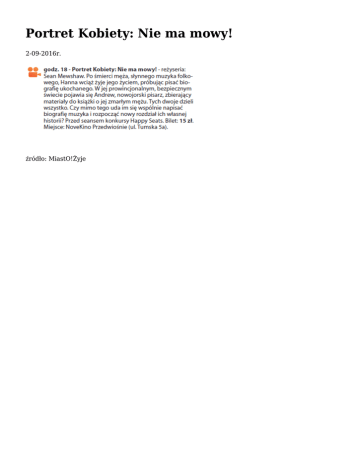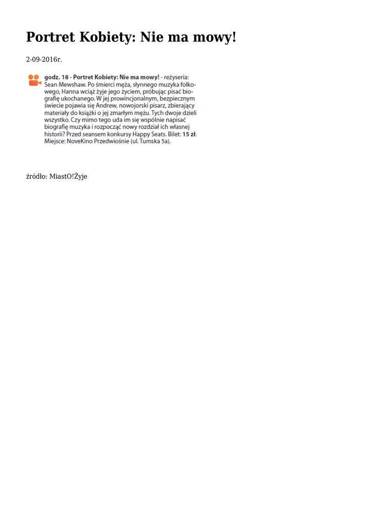 Portret Kobiety: Nie ma mowy! 2-09-2016r. źródło: MiastO!Żyje