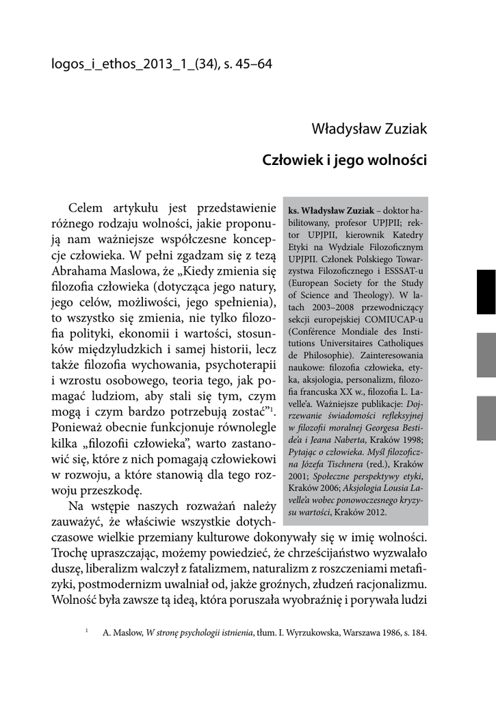 Władysław Zuziak Człowiek i jego wolności
