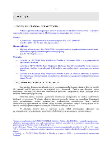 zagospodarowania przestrzennego m. Płońska stanowią następujące akty prawne: