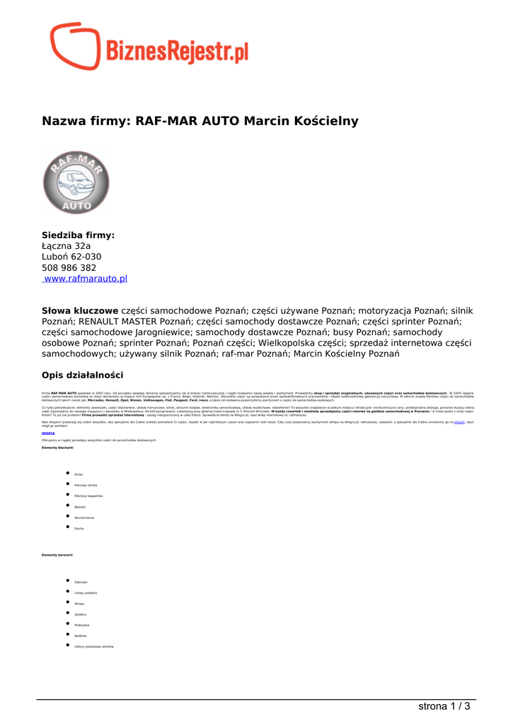 Nazwa firmy: RAF-MAR AUTO Marcin Kościelny