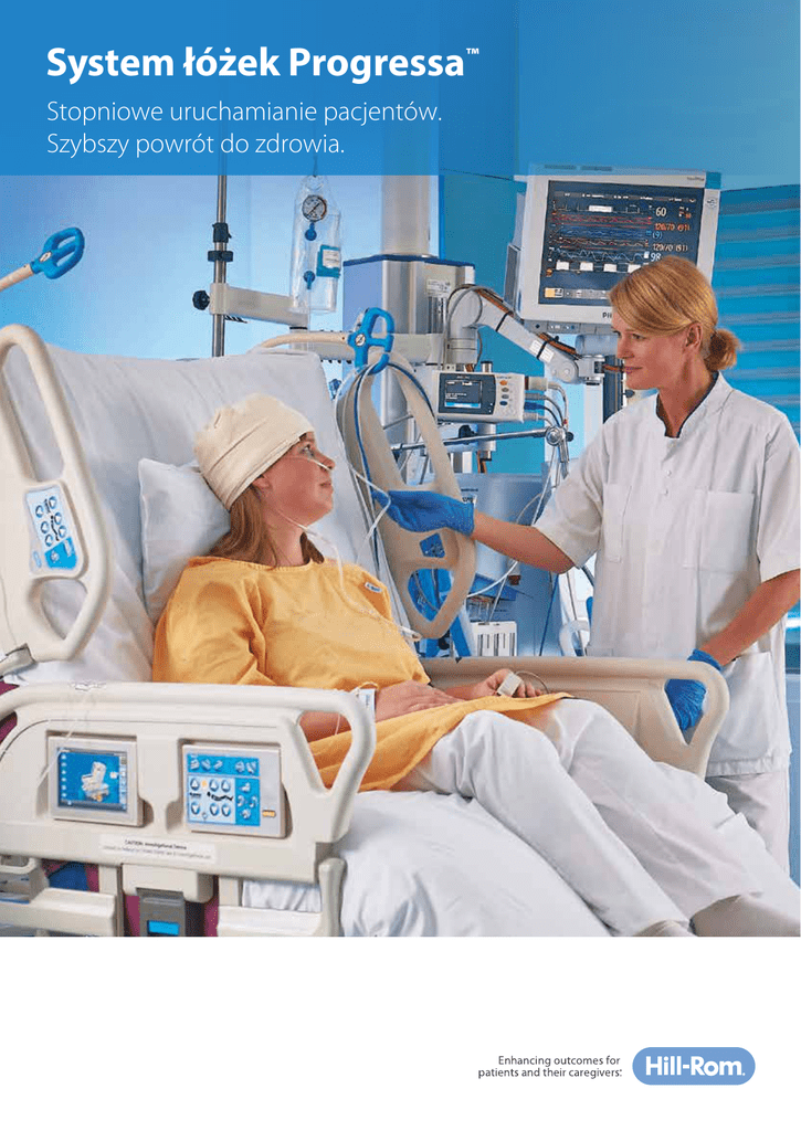 System łóżek Progressa™ Stopniowe uruchamianie pacjentów. Szybszy powrót do zdrowia. Poziom zaawansowania i związanych z tym wymagań stanowisk do intensywnej terapii rośnie z roku na rok. Wyzwania Rozwiązanie Oddziały intensywnej terapii (OIT) na całym świecie zmagają się z bardzo podobnymi wyzwaniami i mają takie same podstawowe potrzeby. Są to: wyższa jakość opieki zdrowotnej i ograniczenie wydatków, skrócenie czasu pobytu pacjenta w szpitalu i zmniejszenie liczby ponownych przyjęć na oddział, a także zapobieganie powikłaniom, takim jak np. zakażenia szpitalne, atrofia mięśni czy odleżyny. Wczesne bezpieczne uruchamianie pacjentów pomaga przyspieszyć powrót 1-6 do zdrowia, co zostało potwierdzone klinicznie. Wyjątkowa oferta firmy Hill-Rom obejmuje szeroką gamę kompleksowych rozwiązań klinicznych ułatwiających wczesne uruchamianie pacjentów oraz umożliwiających bezpieczną i skuteczną terapię. 2 Nasze założenia Podczas projektowania i produkcji wszystkich swoich rozwiązań firma Hill-Rom kieruje się koncepcją Mobility is Life™. Jej celem jest poprawa wyników leczenia pacjentów oraz warunków pracy personelu medycznego przez tworzenie pionierskich metod przyspieszających powrót do zdrowia. 3 Następstwa unieruchomienia Układ nerwowy Delirium występuje u prawie 80% pacjentów na OIT, zwiększając koszty 25 leczenia aż o 60 000 $ Układ oddechowy VAP* może wydłużyć pobyt na OIT o 10–12 dni, zwiększając koszt hospitalizacji jednego pacjenta 9 o 12 000–25 000 $ Skóra Średni koszt leczenia odleżyn III i IV stopnia na oddziale intensywnej terapii wynosi 43 000 $, a pobyt pacjenta 13 wydłuża się o 4 dni Układ sercowonaczyniowy Nietolerancja ortostatyczna, zmniejszenie wydolności serca i zmniejszenie objętości 19 osocza o 15% Metabolizm Oporność na insulinę i ujemny bilans azotowy * VAP = Odrespiratorowe zapalenie płuc 4 Unieruchomienie zwiększa ryzyko wystąpienia zagrażających życiu powikłań i problemów psychologicznych, a także wywiera znaczący negatywny wpływ na wyniki leczenia. Układ mięśniowoszkieletowy Utrata 50% siły mięśniowej w pierwszych 3–5 tygodniach, z powrotem siły mięśniowej wynoszącym zaledwie 6% na 3, 26, 27 tydzień wykonywanych ćwiczeń Nerki Zatrzymanie moczu, zastój i/lub kamienie moczowe Układ pokarmowy Zaparcia i kamienie kałowe Problemy kliniczne związane z brakiem ruchu nasilają się w przypadku pacjentów wymagających intensywnego nadzoru medycznego, przebywających na oddziałach intensywnej terapii. Dlaczego wczesne uruchamianie jest tak ważne? Następstwa unieruchomienia pacjenta obejmują dłuższy pobyt w szpitalu i wyższe koszty leczenia, a w przypadku personelu medycznego – większe 11 ryzyko urazów zawodowych. Unieruchomienie może spowodować: • Wydłużenie czasu wentylacji zastępczej • Wydłużenie pobytu na OIT • Wydłużenie pobytu w szpitalu • Wyższą umieralność Układ krwiotwórczy Istniejące dowody wskazują na to, że wprowadzenie na OIT programu TM wczesnego uruchomienia pacjenta, np. programu Progressive Mobility firmy Hill-Rom, może skrócić czas pobytu w szpitalu, zredukować koszty 1–6 leczenia oraz poprawić stan zdrowia i samopoczucie pacjenta. Anemia 5 Znaczący wpływ programu Progressive Mobility i rozwiązań sprzętowych na koszty Atrofię mięśniową można zaobserwować już w ciągu trzech do pięciu dni od chwili unieruchomienia pacjenta, zarówno u zdrowych, jak i krytycznie chorych osób dorosłych. Pogorszenie sprawności w okresie między przyjęciem a wypisem ze szpitala można zaobserwować aż u 3 50% pacjentów. Spowodowane unieruchomieniem powikłania ze strony układu oddechowego są główną przyczyną ponownego przyjęcia na OIT. Często powodują dwukrotne wydłużenie średniego 12 czasu pobytu w szpitalu i zwiększenie umieralności do 10%. Ich konsekwencją są również wysokie koszty leczenia oraz występowania odleżyn szpitalnych. Częstość występowania odleżyn nabytych podczas leczenia na OIT wynosi około 4,5%, a średni koszt 13, 14 leczenia odleżyn III i IV stopnia to ponad 43 000 $. Stosowanie programu Progressive Mobility wraz z nowoczesnymi rozwiązaniami sprzętowymi pozwala osiągnąć lepsze wyniki leczenia oraz obniżyć koszty terapii. Jakie są korzyści stosowania programu wczesnego uruchomienia pacjenta? Wpływ stosowania programu wczesnego uruchomienia pacjenta na OIT na koszty leczenia Celem badania dr. Winkelmana była ocena wpływu stosowania programu Progressive Mobility, wraz z nowoczesnymi łóżkami terapeutycznymi i 6 rozwiązaniami do podnoszenia pacjentów, na wyniki ich leczenia na OIT. Oszczędności związane z kosztem pobytu na OIT wyniosły 11 507 $ (przy średnim koszcie dziennym wynoszącym 3968 $). • O szczędności wynikające z krótszego pobytu na OIT wyniosły około 13 000 $ • Średni pobyt na OIT skrócił się o 5 dni • Średni czas wentylacji zastępczej skrócił się o 3 dni • Pacjent mógł podjąć pierwszą aktywność 3,5 dnia wcześniej • W przypadku pacjentów, którzy zostali objęci programem wczesnego uruchomienia, oszczędności wynikające z krótszego czasu wentylacji zastępczej wyniosły około 11 000 $ 1 Oszczędności wynikające z zastosowania na OIT programu wczesnego uruchomienia pacjenta Oszczędności wynikające z krótszego o dzień pobytu* na OIT w przypadku oddziałów przyjmujących średnio 500 pacjentów rocznie Oszczędności wynikające z krótszego o dzień czasu wentylacji zastępczej na OIT przy średnio 200 wentylowanych pacjentach rocznie Krótszy czas pobytu na OIT 1 dzień Krótszy czas wentylacji zastępczej 1 dzień Koszt pobytu na OIT/dzień 3184 $ Koszt wentylacji zastępczej/dzień 3968 $ Oszczędności wynikające z krótszego pobytu na OIT/pacjent 3184 $ Oszczędności wynikające z krótszego czasu wentylacji zastępczej/pacjent 3968 $ Liczba pacjentów przyjmowanych na OIT r