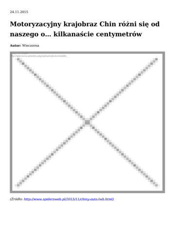 24.11.2015 Motoryzacyjny krajobraz Chin różni się od naszego o… kilkanaście centymetrów Autor: Wieczorna Image not found http://wieczorna.pl/index.php/uploads/photos/middle_ (Źródło: http://www.spidersweb.pl/2015/11/chiny-auta-lwb.html) Przyglądając się przez tydzień chińskim ulicom, w Hongkongu, Szanghaju i w Shenzhen, widziałem niemal dokładnie te same marki samochodów, które widać na polskich drogach. Owszem, sporo było tam produktów lokalnych, ale to nie one były najciekawsze. Dużą część z nich można bowiem kupić w innych miejscach świata. Jest jednak kategoria pojazdów, które wydają się znajome, a jednak nie zobaczymy ich nigdzie poza Chinami. Motoryzacyjny krajobraz Chin różni się od naszego o… kilkanaście centymetrów