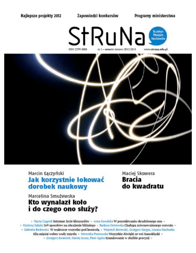 1 StRuNa – Biuletyn Młodych Naukowców StRuNa – Young Scientists Journal ISSN 2299-3088 niezależne ogólnopolskie czasopismo informacyjno-naukowe © Copyright by Fundusz Pomocy Studentom, Warszawa 2012 © Copyright by Authors, Warszawa 2012 [email protected] redakcja www.struna.edu.pl Adriana Bartnik (zastępczyni redaktora naczelnego) Wspólna strona dla przedsięwzięć realizowanych Bożena Bednarczyk w ramach programu StRuNa, w tym: Maria Golińska – bazy danych StRuNa zawierającej informacje Anna Książkowska (redakcja językowa, szefowa działu korekty) o organizacjach studentów i doktorantów Tomasz Lewiński (zastępca redaktora naczelnego, szef działu prawnego) posiadających cele naukowe oraz o realizowanych Marcin Łączyński przez nie projektach, Robert Pawłowski (redaktor naczelny) Dominika Rafalska (pierwsza zastępczyni redaktora naczelnego) Jeremy Carter Stiehl Paweł Strawiński – konkursu StRuNa w kategoriach Projekt Roku, Koło Naukowe Roku, Opiekun Roku, Publikacja Roku, Konferencja Roku, Wyprawa Roku, Sponsor Roku, – czasopisma „StRuNa – Biuletynu Młodych Naukowców”. Redakcja nie ponosi odpowiedzialności za treść StRuNa w sieci również na: materiałów przesłanych jej do publikacji przez autorów http://www.facebook.com/StudenckiRuchNaukowyStRuNa projektów naukowych. Redakcja nie zwraca materiałów niezamówionych. Redakcja zastrzega sobie prawo wydawca dokonywania zmian i skrótów. Fundacja „Fundusz Pomocy Studentom” KRS 0000305179 nr 1 – semestr zimowy 2012/2013 NIP 701-01-23-771 nakład: 3200 egz. ul. Krakowskie Przedmieście 24/108 opracowanie graficzne: Antoni Frontczak 00-927 Warszawa rozwiązania informatyczne: Kamil Łucznik faks: +48 22 826 56 13 [email protected] Numer przygotowany w ramach zadania zleconego www.pomocstudentom.pl Ministerstwa Nauki i Szkolnictwa Wyższego pod nazwą http://www.facebook.com/FunduszPomocyStudentom StRuNa 2.0 – Program promocji osiągnięć ruchu naukowego studentów i doktorantów. Wszystkie teksty zostały sprawdzone przy użyciu systemu antyplagiatowego „Plagiat.pl” (www.plagiat.pl). StRuNa nr 1 2012/2013 2 Recenzenci Autorami recenzji artykułów zgłoszonych do pierwszego wydania czasopisma „StRuNa” są między innymi: prof. dr hab. Wanda M. Gaczek prof. dr hab. Jerzy Gadomski prof. dr hab. n. med. Tadeusz Gaździk prof. dr hab. Bolesław Ginter prof. dr hab. Jorg Hackmann prof. dr hab. Piotr Hübner prof. dr hab. Halina Karaś prof. dr hab. inż. Tadeusz Kulik prof. dr hab. inż. Andrzej Michalski prof. dr hab. Iwona Modrzewska-Pianetti prof. dr hab. inż. Jan Mróz prof. dr hab. Mirosław Przylipiak prof. dr hab. Grzegorz Rosiński prof. dr hab. Elżbieta Stadtmuller prof. dr hab. Marek S. Szczepański prof. dr hab. Elżbieta Tarkowska prof. dr hab. Barbara Wolska dr hab. Krzysztof Chełmiński, profesor PW dr hab. inż. Jerzy Chojnacki, profesor PKosz. dr hab. Krystyna Iwińska-Knop, profesor UŁ dr hab. Krystyna Juszyńska, profesor AMŁ dr hab. Jan Kajfosz, profesor UŚ dr hab. inż. Anna Kawałek, profesor PCz dr hab. n. med. Marek Mandera, profesor ŚUM dr hab. Piotr Niedzielski, profesor USz dr hab. Krystian Pera, profesor UEK dr hab. Krzysztof Podemski, profesor UAM dr hab. Iga Rudawska, profesor USz dr hab. inż. Dariusz Rydz, profesor PCz dr hab. inż. arch. Grażyna Schneider-Skalska, prof. PK dr hab. Jerzy Sielski, profesor AJD dr hab. inż. Jerzy Sładek, profesor PK dr hab. Urszula Swadźba, profesor UŚ dr hab. Anita Wolaniuk, profesor UŁ dr hab. inż. Witold Żukowski, profesor PK dr hab. Dariusz Brzostek dr hab. Adam Fitas StRuNa nr 1 2012/2013 dr hab. Grażyna Karmowska dr hab. Maciej Karpiński dr hab. Alina Kępińska dr hab. n. med. Ewa Kluczewska dr hab. Grzegorz Maciejewski dr hab. Anna Marchewka dr hab. Mariusz Moryń dr hab. Wojciech Nowicki dr hab. Beata Maria Parysiewicz dr hab. inż. Izabela Sówka dr hab. Krystyna Tyrpień dr hab. Radeusz Wallas dr Joanna Bachura-Wojtasik dr Paweł Grzesiowski dr inż. Szymon Hernik dr Julia Kapelańska-Pręgowska dr Samanta Kowalska dr Mirosław Lakomy dr inż. arch. Monika Neff dr inż. Jerzy Stradomski dr Paweł Strawiński dr Joanna Szadura dr Grzegorz Tokarz W powyższym zestawieniu nie uwzględniliśmy re cenzentów, którzy są równocześnie członkami rady programowej czasopisma „StRuNa” oraz recen zentów, którzy swoje uwagi przysłali na formularzach nie zawierających sformułowania o zgodzie na umieszczenie w spisie recenzentów. Wszystkim recenzentom serdecznie dziękujemy za wskazówki udzielone autorom i za pomoc w wybo rze tekstów do publikacji. Redakcja 3 Rada programowa czasopisma „StRuNa” prof. dr hab. Katarzyna Chałasińska-Macukow prof. dr hab. Tadeusz Wolsza prof. dr hab. Mirosław Duchowski prof. dr hab. Leszek Zasztowt prof. dr hab. Małgorzata Fuszara prof. dr hab. Andrzej Zoll prof. dr hab. Piotr Garstecki prof. dr hab. Katarzyna Żukrowska prof. dr hab. Mirosław Handke dr hab. Urszula Jarecka, profesor UW prof. dr hab. Zbigniew Judycki dr hab. Grzegorz Leszczyński, profesor UW prof. dr hab. inż. Waldemar Kaczmarek dr hab. Janusz Majcherek, profesor UP prof. dr hab. Elżbieta Kaczyńska dr hab. Krystyna Ostrowska, profesor UW prof. dr hab. Marta Kicińska-Habior dr hab. inż. Janusz Piechna, profesor PW prof. dr hab. Wiesław Krajka dr hab. Monika Płatek, profesor UW prof. dr hab. Marcin Król dr hab. Arkady Rzegocki prof. dr hab. Jacek Kurczewski dr hab. inż. kpt. ż. w. Adam Weintrit, profesor AM prof. dr hab. Zbigniew Marciniak dr hab. Waldemar Zubrzycki, profesor WSPol prof. dr hab. Alojzy Nowak ks. dr hab. Władysław Zuziak, profesor UPJPII prof. dr hab. Wojciech Pluskiewicz dr Magdalena Biesaga prof. dr hab. Krystyna Pyrzyńska dr Agata Fijalkowski prof. Jerzy Stuhr dr Aneta Gawkowska prof. dr hab. Bogusław Śliwerski dr Anna Krajewska prof. dr hab. Łukasz Turski dr Magdalena Sobolewska prof. dr hab. Marek Wąsowicz dr Joanna Śmigielska prof. dr hab. inż.