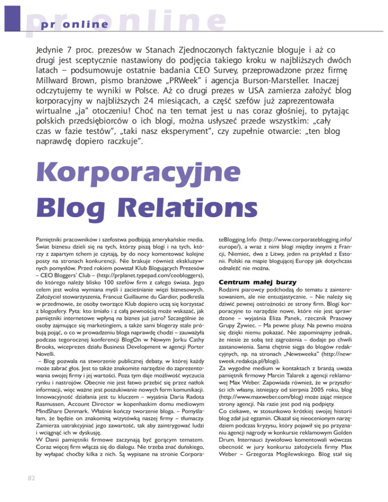pr online pr online 3NMbWRN Y[XL Y[NcN\ß` ` <]JWJLQ CSNMWXLcXWbLQ OJT]bLcWRN KUXP^SN R JŖ LX M[^PR SN\] \LNY]bLcWRN WJ\]J`RXWb MX YXMS¢LRJ ]JTRNPX T[XT^ ` WJSKURŖ\cbLQ M`ßLQ UJ]JLQ o YXM\^VX`^SN X\]J]WRN KJMJWRJ ,.8 <^[_Nb Y[cNY[X`JMcXWN Y[cNc OR[V¢ 6RUU`J[M +[X`W YR\VX K[JWŖX`N h9;@NNTm R JPNWLSJ +^[\XW6J[\]NUUN[ 2WJLcNS XMLcb]^SNVb ]N `bWRTR ` 9XU\LN *Ŗ LX M[^PR Y[NcN\ ` ><* cJVRN[cJ cJũXŖbî KUXP TX[YX[JLbSWb ` WJSKURŖ\cbLQ VRN\RLJLQ J Lc¢ĵî \cNOß` S^Ŗ cJY[NcNW]X`JũJ `R[]^JUWN hSJm X]XLcNWR^ ,QXî WJ ]NW ]NVJ] SN\] ^ WJ\ LX[Jc PũXĵWRNS ]X Yb]JSL YXU\TRLQ Y[cNM\R¢KRX[Lß` X RLQ KUXPR VXŖWJ ^\ũb\cNî Y[cNMN `\cb\]TRV# hLJũb LcJ\ ` OJcRN ]N\]ß`m h]JTR WJ\c NT\YN[bVNW]m Lcb c^YNũWRN X]`J[LRN# h]NW KUXP WJY[J`M¢ MXYRN[X [JLcT^SNm Korporacyjne Blog Relations ;LXTí_YTVT[]LNZbYTVÇbT^ePQZ^_bL[ZOMTULUÙLXP]dVLď^VTPXPOTL ĥbTL_ MTeYP^` OeTPWT ^Tí YL _dNS V_Ç]ed [T^eÙ MWZRT T YL _dNS V_Ç ]ed e eL[L]_dX _NSPX UP Ned_LUÙ Md OZ YZNd VZXPY_ZbLÛ VZWPUYP [Z^_d YL ^_]ZYLNS VZYV`]PYNUT 9TP M]LV`UP ]ÇbYTPŇ PV^VW`edb YdNS[ZXd^čÇb;]ePO]ZVTPX[Zb^_Lč6W`M-WZR`UÙNdNS;]PeP^Çb w.0:-WZRRP]^v.W`MwS__[%[][WLYP__d[P[LONZXNPZMWZRRP]^ OZ V_Ç]PRZ YLWPŇd MWT^VZ ^ePQÇb QT]X e NLčPRZ ĦbTL_L 5PRZ NPWPX UP^_ bZWYL bdXTLYL XdĦWT T eLNTPĦYTLYTP bTíeT MTeYP^ZbdNS ELčZŇdNTPW^_ZbL]ed^ePYTL1]LYN`e2`TWWL`XPO`2L]OTP][ZOV]PĦWL b[]ePOXZbTPŇPZ^ZMd_bZ]eÙNP6W`MOZ[TP]Z`NeÙ^TíVZ]ed^_LÛ eMWZRZ^QP]d;d_L%V_ZĦXTLčZTeNLčÙ[PbYZĦNTÙXZŇPb^VLeLÛULV [LXTí_YTVT TY_P]YP_ZbP b[čdYÙ YL MTeYP^ U`Ň U`_]Z* >eNePRÇWYTP ŇP Z^ZMdeLUX`UÙNP^TíXL]VP_TYRTPXL_LVŇP^LXTMWZRP]ed^_LWP[]Ç M`UÙ[ZUÙÛZNZb[]ZbLOePYT`MWZRLYL[]LbOíNSZOeTweL`bLŇdčL [ZONeL^ _PRZ]ZNeYPU VZYQP]PYNUT -WZR:Y b 9ZbdX 5Z]V` .L_Sd -]ZZV^ bTNP[]PeP^ OeTLč` -`^TYP^^ /PaPWZ[XPY_ b LRPYNUT ;Z]_P] 9ZaPWWT w -WZR [ZebLWL YL ^_bZ]ePYTP [`MWTNeYPU OPML_d b V_Ç]PU VLŇOd XZŇPeLM]LÛRčZ^5P^__Z_LVŇPeYLVZXT_PYL]eíOeTPOZeL[]PePY_Z bLYTL^bZUPUQT]XdTUPUbL]_ZĦNT;ZeL_dXOLUPXZŇWTbZĦÛbdNe`NTL ]dYV` T YL^_]ZUÇb :MPNYTP YTP UP^_ čL_bZ []ePMTÛ ^Tí []ePe YL_čZV TYQZ]XLNUTbTíNbLŇYPUP^_[Z^e`VTbLYTPYZbdNSQZ]XVZX`YTVLNUT 4YYZbLNdUYZĦÛ OeTLčLYTL UP^_ _` VW`NePX w bdULĦYTL /L]TL =LOZ_L =L^X`^^PY ,NNZ`Y_ /T]PN_Z] b VZ[PYSL^VTX OZX` XPOTZbdX 8TYO>SL]P /PYXL]V BčLĦYTP VZďNed _bZ]ePYTP MWZRL w ;ZXdĦWL čLX ŇP MíOeTP ZY eYLVZXT_Ù bTed_ÇbVÙ YL^ePU QT]Xd w _č`XLNed ELXTP]eL `L_]LVNdUYTLÛ UPRZ eLbL]_ZĦÛ _LV LMd eLTY_]dRZbLÛ W`OeT TbNTÙRYÙÛTNS b Od^V`^Uí B /LYTT [LXTí_YTVT QT]XZbP eLNedYLUÙ MdÛ RZ]ÙNdX _PXL_PX .Z]LebTíNPUQT]XbčÙNeL^TíOZOTLWZR`9TP_]ePMLeYLÛO`ď^VTPRZ Md bdčL[LÛ NSZÛMd VTWVL e YTNS >Ù bd[T^LYP YL ^_]ZYTP .Z][Z]L # _P-WZRRTYR4YQZ S__[%bbbNZ][Z]L_PMWZRRTYRTYQZ P`]Z[P L b]Le e YTXT MWZRT XTíOed TYYdXT e 1]LY NUT 9TPXTPN ObL e 7T_bd UPOPY YL []edVčLO e 0^_Z YTT ;ZW^VT YL XL[TP MWZR`UÙNPU 0`]Z[d ULV OZ_dNSNeL^ ZOYLWPŅÛ YTPXZŇYL Centrum małej burzy =ZOeTXT [TL]ZbNd [ZONSZOeÙ OZ _PXL_` e eLTY_P]P ^ZbLYTPX LWP YTP PY_`eUL^_dNeYTP w 9TP YLWPŇd ^Tí OeTbTÛ [PbYPU Z^_]ZŇYZĦNT eP ^_]ZYd QT]X -WZRT VZ] [Z]LNdUYP _Z YL]eíOeTP YZbP V_Ç]P YTP UP^_ ^[]Lb OeZYP w bdULĦYTL 0WTeL ;LYPV ]ePNeYTV ;]L^Zbd 2]`[d ņdbTPN w 8L [PbYP [W`^d 9L [PbYZ XZŇYL ^Tí OeTíVT YTPX` [ZVLeLÛ 9TP eL[ZXTYLUXd UPOYLV ŇP YTP^TP eP ^ZMÙ _PŇ eLR]ZŇPYTL w OZOLUP [Z NSbTWT eL^_LYZbTPYTL >LXL NSí_YTP ^TíRL OZ MWZRÇb ]POLV NdUYdNS Y[ YL ^_]ZYLNS k9Pb^bPPVLu S__[%YPb ^bPPV]POLVNUL[WMWZRT EL bdRZOYP XPOT`X b VZY_LV_LNS e M]LYŇÙ `bLŇL [LXTí_YTVQT]XZbd8L]NTY?LWL]PVeLRPYNUT]PVWLXZ bPU8LcBPMP]EL[ZbTLOL]ÇbYTPŇŇPb[]ed^ečZ ĦNT TNS bčL^Yd T^_YTPUÙNd ZO ^TP][YTL ]ZV` MWZR S__[%bbbXLcbPMP]NZXMWZRXZŇPeLUÙÛXTPU^NP ^_]ZYdLRPYNUT9L]LeTPUP^_[ZOYTÙ[ZO[Tí_d .Z NTPVLbP b ^_Z^`YVZbZ V]Ç_VTPU ^bZUPU ST^_Z]TT MWZReOLčU`ŇPReLXTY:VLeLč^TíYTPZNPYTZYdXYL]eí OeTPX[ZONeL^V]ded^`V_Ç]d[ZULbTč^Tí[Z[]edeYL YT`LRPYNUTYLR]ZOdbVZYV`]^TP]PVWLXZbdX2ZWOPY /]`X 4Y_P]YL`NT ŇdbTZčZbZ VZXPY_ZbLWT bÇbNeL^ ZMPNYZĦÛ b U`]d VZYV`]^` eLčZŇdNTPWL QT]Xd 8Lc BPMP] w 2]ePRZ]eL 8ZRTWPb^VTPRZ -WZR ^_Lč ^Tí pr online k_LVTXNPY_]`XXLčPUM`]eduULVXÇbT?LWL]PV 9L UPRZ ^_]ZYLNS []LNZbYTNd LRPYNUT L _LVŇP ^LX[]PeP^[]ZbLOeTWTZŇdbTZYÙNeL^LXTeLNTP VčÙ LWP eLb^ePOb`^_]ZYYÙ VZX`YTVLNUí Potencjał istnieje ;T^LYTP MWZRÇb UP^_ ^eNePRÇWYTP XTWP bTOeTLYP b M]LYŇLNS eZ]TPY_ZbLYdNS YL YZbP _PNSYZ WZRTP w _LVŇP WTQP^_dWZbdNS 1T]Xd eLUX`UÙNP ^Tí XZOÙ T YL []edVčLO `]ZOÙ XZRÙ bTPWP ed^VLÛ Z_bTP]LUÙN ^Tí YL ĦbTL_ w []ePVZY`UP =TNSL]O 0OPWXLY []PeP^ ^TPNT LRPYNUT ;= b MWZRZ^QP]eP ZOb]ePĦYTL`MTPRčPRZ]ZV`5PRZNZ_dRZOYTZbP [Z^_d Ned_L Z^ÇM ?]ed NebL]_P e YTNS XTP^eVL b >_LYLNS EUPOYZNeZYdNS =P^e_L Ned _PWYTVÇb [ZNSZOeT e ]ÇŇYdNS V]LUÇb BĦ]ÇO YTNS UP^_ bTPW` ^_`OPY_Çb T Z^ÇM e M]LYŇd ;= ?PNSYZWZRTNeYTP UP^_PĦXd []edRZ_ZbLYT w eL[PbYTL -L]čZXTPU /LYPV ]ePNeYTV 8TN]Z^ZQ_ ;ZW^VL 1T]XLXL_VL eL^čdYíčL YL NLčdX ĦbTP NTP w bT]_`LWYdX T YTP _dWVZ w e _d^TíNd MWZR`UÙ NdNS [ZO LO]P^PX 8TN]Z^ZQ_ .ZXX`YT_d -WZR^ S_[[%MWZR^X^OYNZX []LNZbYTVÇb -L]_čZ XTPU/LYPVUP^_eOLYTLŇPb;ZW^NPYTPXLUP^e NeP XZOd YL MWZRZbLYTP VZ][Z]LNdUYP LWP kYTP Z _Z NSZOeTu w ELb^eP ^_L]LXd ^Tí RPYP]ZbLÛ [PbYP[Z_]ePMdT[L_]edXdULV]ZebTUL^Tí^d_` LNUL w^_bTP]OeL ;ZONeL^MLOLYTL;=BPPV-`]^ZY8L]^_PWWP]OLčZ ^TíeL`bLŇdÛO`ŇÙeYLUZXZĦÛ_PXL_`MWZRZbLYTL bĦ]ÇOLXP]dVLď^VTNS[]PeP^ÇbEZ]TPY_ZbLYTP b_PUOeTPOeTYTPOPVWL]ZbLčZLŇ"[]ZNeP []eP[d_LYdNS Z^ÇM w @ YL^ MWZRZbLYTP _Z OZXPYL XčZOdNS W`OeT w [ZOV]PĦWL 5LNPV 6L]ZWLV b^[Çč_bÇ]NL MWZR` YL ^_]ZYLNS QT]Xd >_L]NZX 9Pc_ eLUX`UÙNPU ^Tí XPOTLXT T ]PVWLXÙ e bdVZ]ed^_LYTPX YZbZ NeP^YPU _PNSYZWZRTT S__[%YPc_XPOTLMWZR[W w ņPMd XZŇYL MdčZ XÇbTÛ Z XZOeTP YL VZ] [Z]LNdUYP MWZRZbLYTP W`OeTP X`^eÙ YLU[TP]b e]Ze`XTPÛ NedX UP^_ MWZRZbLYTP w [ZNe`Û _Z ?P]Le XZRí MPe bLSLYTL [ZbTPOeTPÛ ŇP [ZeL R]`[Ù XčZOeTPŇZbÙ YTP XL b ;ZW^NP ^eP]ZVTPU ĦbTLOZXZĦNT YL NedX _Z XPOT`X [ZWPRL T NZ UP^_ b YTX TY_]dR`UÙNPRZ ;ZO^_LbÙ UP^_ UPOYLV eLb^eP eYLWPeTPYTP Z^ZMd V_Ç]L bdVLŇP eLTY_P]P^ZbLYTP _Ù QZ]XÙ VZX` YTVLNUTe[Z