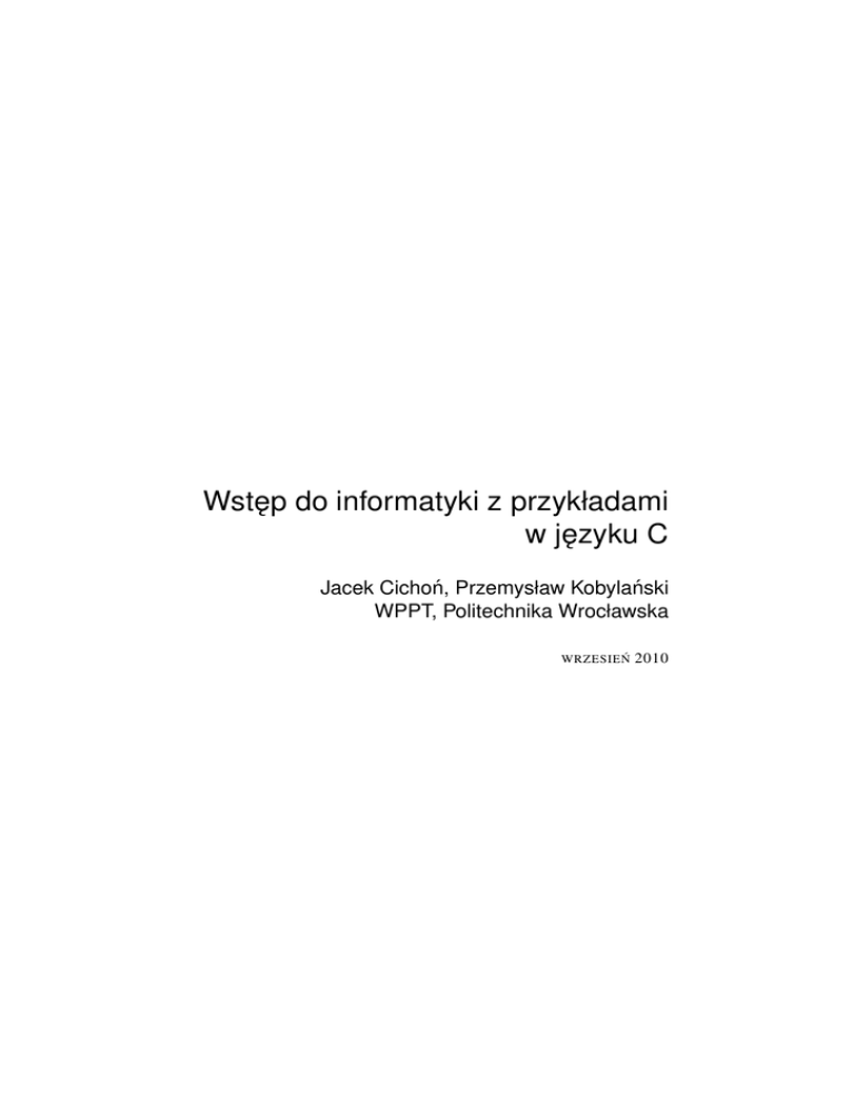Ksia˛żka ta jest wst˛epem do informatyki rozumianej jako nauki o algorytmach. Takie potraktowanie informatyki jest pewnym zaw˛eżeniem dziedziny. Jednak według