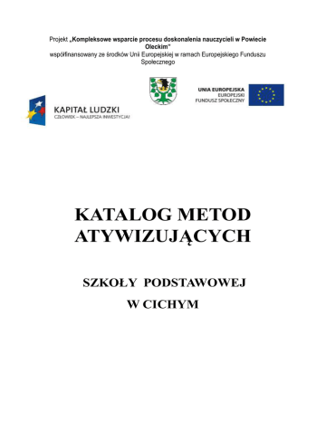 Projekt „Kompleksowe wsparcie procesu doskonalenia nauczycieli w Powiecie Oleckim” współfinansowany ze środków Unii Europejskiej w ramach Europejskiego Funduszu Społecznego KATALOG METOD ATYWIZUJĄCYCH SZKOŁY PODSTAWOWEJ W CICHYM Maj 2014r. Spis treści I.WSTĘP .............................................................................................................................................. 3 II.CZYNNIKI, KTÓRE UŁATWIAJĄ UCZENIE SIĘ ....................................................................................... 3 III.JAK ORGANIZOWAĆ PROCES DYDAKTYCZNY, BY PRZYNOSIŁ NAJLEPSZE EFEKTY? .................................................................................................... 7 IV.PODZIAŁ METOD NA UCZANIA ......................................................................................................... 8 V.PRZYKŁADY CIEKAWYCH METOD AKTYWIZUJĄCYCH UCZNIÓW, KTÓRE MOŻNA WYKORZYSTAĆ W PRACY DYDAKTYCZNO-WYCHOWAWCZEJ .......................................................................................... 10 VI.KORZYŚCI WYNIKAJĄCE Z ZASTOSOWANIA METOD ATYWIZUJĄCYCH:.......................................... 19 2 I. WSTĘP Metoda nauczania jest to celowo i systematycznie stosowany sposób pracy nauczyciela z uczniem umożliwiający uczniom opanowanie wiadomości i umiejętności. Dzieci w młodszym wieku szkolnym dążą do rozszerzania i pogłębiania swej wiedzy, starają się zrozumieć świat i poszukują dla siebie miejsca w otaczającym je środowisku. Przejawiają potrzebę poznawania, poszukiwania i odkrywania wszystkiego co znajduje się w ich otoczeniu. Chęć uczenia ujawniają zwykle przez naturalną ciekawość. Nauczyciel powinien być twórczy, otwarty na nowości, eksperymenty. Wtedy rozwija własną aktywność. Powinien dbać o to, aby uczeń pracował na lekcji aktywnie i twórczo. Drogą dla rozwijania aktywności twórczej jest stwarzanie takich sytuacji dydaktyczno-wychowawczych, które prowadzą do zastosowania wiedzy w działalności praktycznej. Osiąganie zamierzonych celów zależy przede wszystkim od tego jakie metody i formy stosuje się na zajęciach. Niezbędne jest to, aby obok metod podających stosować metody pobudzające uczniów do współudziału w tworzeniu i przekształcaniu informacji. Metody aktywizujące pracę uczniów w procesie dydaktycznym są uznawane przez współczesnych dydaktyków za naczelną zasadę nauczania-uczenia się. Aktywność uczniów jest ważna w procesie zdobywania wiedzy. Bierne przyswajanie wiadomości utrudnia uczniom ich zrozumienie i wykorzystanie w praktyce, a wiedza przekazywana w postaci gotowej jest powierzchowna, nietrwała. W zreformowanej szkole nauczyciel nie musi wiedzieć wszystkiego, ale może i powinien wyposażyć swoich uczniów w podstawowe umiejętności radzenia sobie z gwałtownie zmieniającą się rzeczywistością. W prawidłowo zorganizowanym procesie nauczania, główną rolę pełni nauczyciel, który stwarza sytuacje pobudzające uczniów do aktywności, kieruje ich działalnością poznawczą podczas zdobywania wiedzy oraz czuwa nad jej wykorzystaniem. Poprawnie merytorycznie dobrana metoda powinna również dawać możliwość indywidualizacji oddziaływań na każde dziecko, prowadzenia obserwacji, stawiania odpowiedniej diagnozy. Trzeba podkreślić, że uczniowie uczą się w trakcie własnej aktywności. Potrzebną wiedzę i umiejętności nabywają wtedy w sposób trwały, skuteczny i przyjemny. Istotnym elementem procesu uczenia się jest pamięć, a powiększenie zasobów pamięci ma związek z zastosowaną przez niego metodą. Nauczyciel powinien zachęcać uczniów do stawiania pytań i poszukiwania na nie odpowiedzi, stwarzać warunki do bycia odkrywcą i eksperymentatorem. Umożliwienie uczenia się poprzez działanie powoduje, iż zapamiętują 90% tego co robią. Nauczanie jest sztuką wymagającą nie tylko znajomości praw rządzących procesem uczenia się, ale też wyczucia formy, stylu, tempa i rytmu. Poznanie potrzeb uczniów, stworzenie sprzyjającego klimatu i odpowiednich sytuacji dydaktycznych, to warunki niezbędne przy wzbudzaniu motywacji do działania. 3 II. CZYNNIKI, KTÓRE UŁATWIAJĄ UCZENIE SIĘ 1.Pamiętaj, że ludzie z natury posiadają zdolność do uczenia się. 2.Podmiotowo traktuj swoich uczniów. Oni, tak jak ty, mają silne poczucie własnej godności. 3.Zapewnij swoim uczniom poczucie bezpieczeństwa. 4. Ucz przez doświadczanie! Ucz umiejętności. 5. Nie zapomnij, że w procesie uczenia się ważny jest nie tylko intelekt, ale też emocje. 6.Staraj się nie stosować takich metod, których sama nie znasz. 7. Pozwól. Aby uczniowie znali rezultaty własnego uczenia się i mieli wpływ na jego proces. 8. Wzmacniaj pożądane zachowania. 9. W procesie uczenia się zwróć uwagę na informację zwrotną. 10.Pozwól uczniom na samoocenę. To jak zapamiętujemy przedstawia stożek Dalea. 10% tego co czytamy, słyszymy 30% tego co widzimy 50% tego co widzimy i słyszymy 70% tego co mówimy i piszemy 90% tego co wykonujemy 4 Wyróżniamy trzy grupy uczniów: SŁUCHOWCY - lubią dialog i rozmowy - powtarzają głośno to, co napisali - rozmawiają ze sobą - lubią słuchać - lubią wykłady - lubią długie wypowiedzi własne - lubią muzykę - wolą mówić o dziełach sztuki niż je oglądać - dobrze pamiętają imiona WZROKOWCY - lubią demonstracje lub pokazy - lubią wykresy i tabele - lubią opisy - pamiętają twarze - lubią patrzeć, rysować - preferują sztuki wizualne CZUCIOWCY ( kinestetycy ) - uczą się przez wykonywanie i bezpośrednie zaangażowanie - lubią emocje, ruch - nie lubią czytać - pamiętają to – co sami wykonali - muszą się poruszać, wiercić, coś trzymać - tupią, gestykulują - nie lubią słuchać Metody aktywizujące wykorzystują możliwości tkwiące w każdym uczniu. Przygotowują do odbioru rzeczywistości za pomocą wszystkich zmysłów. Rozwijają umiejęt