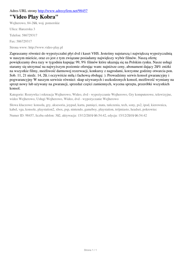 "Video Play Kobra", Wejherowo, Harcerska 3