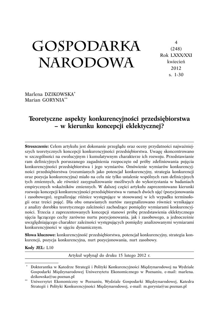 M. Dzikowska, M. Gorynia, Teoretyczne aspekty konkurencyjności
