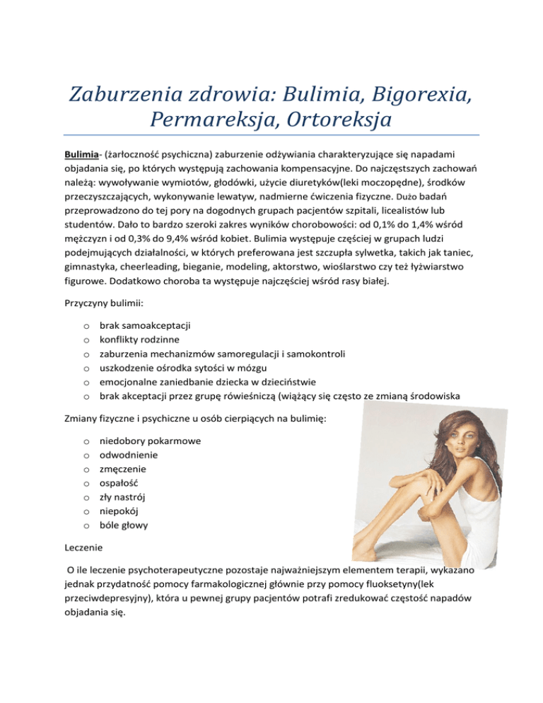 Zaburzenia zdrowia: Bulimia, Bigorexia, Permareksja, Ortoreksja